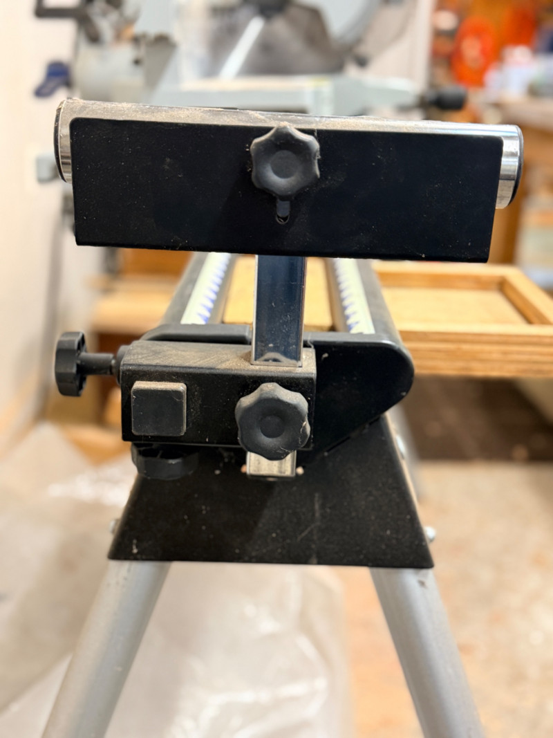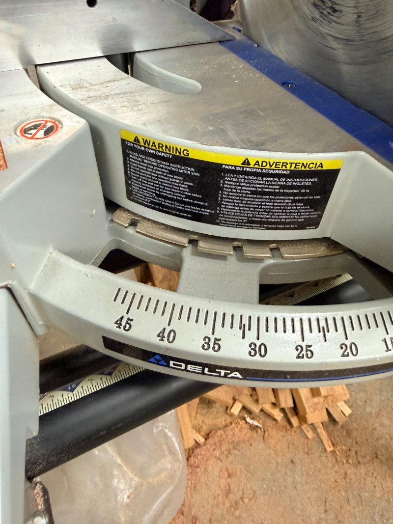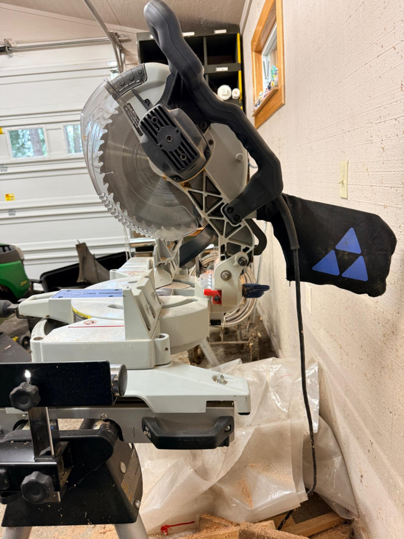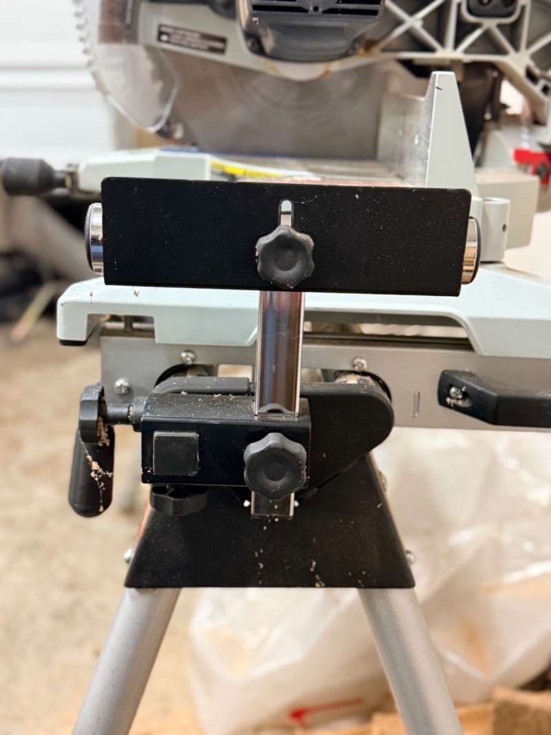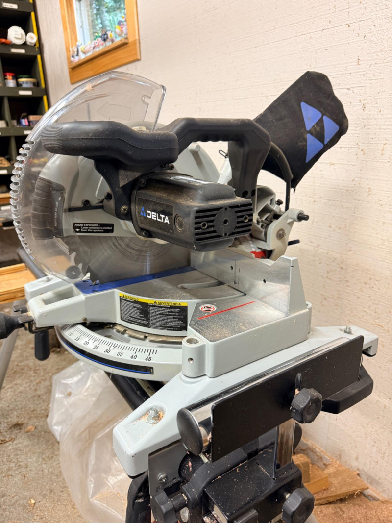 Delta 12” Compound Laser Miter Saw Model 36-255L Sits on a Ryobi Stand 5’x28” Ryobi stand