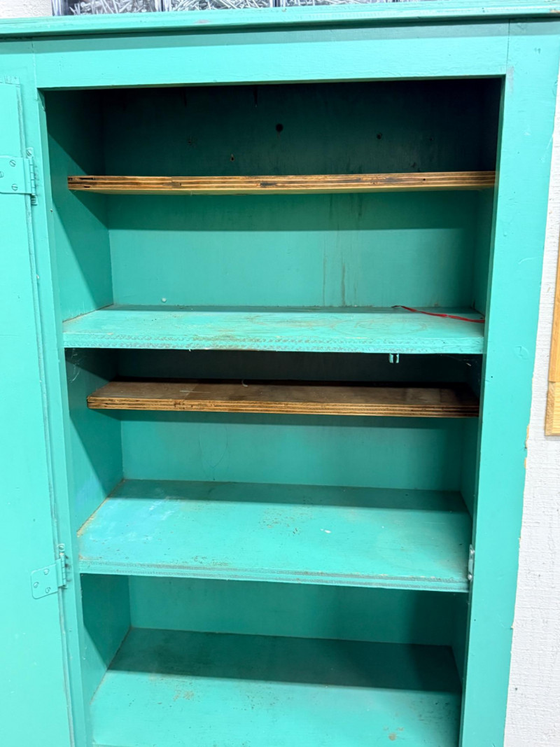 Lot # 220 - Green Single Door Storage Cabinet With Shelves