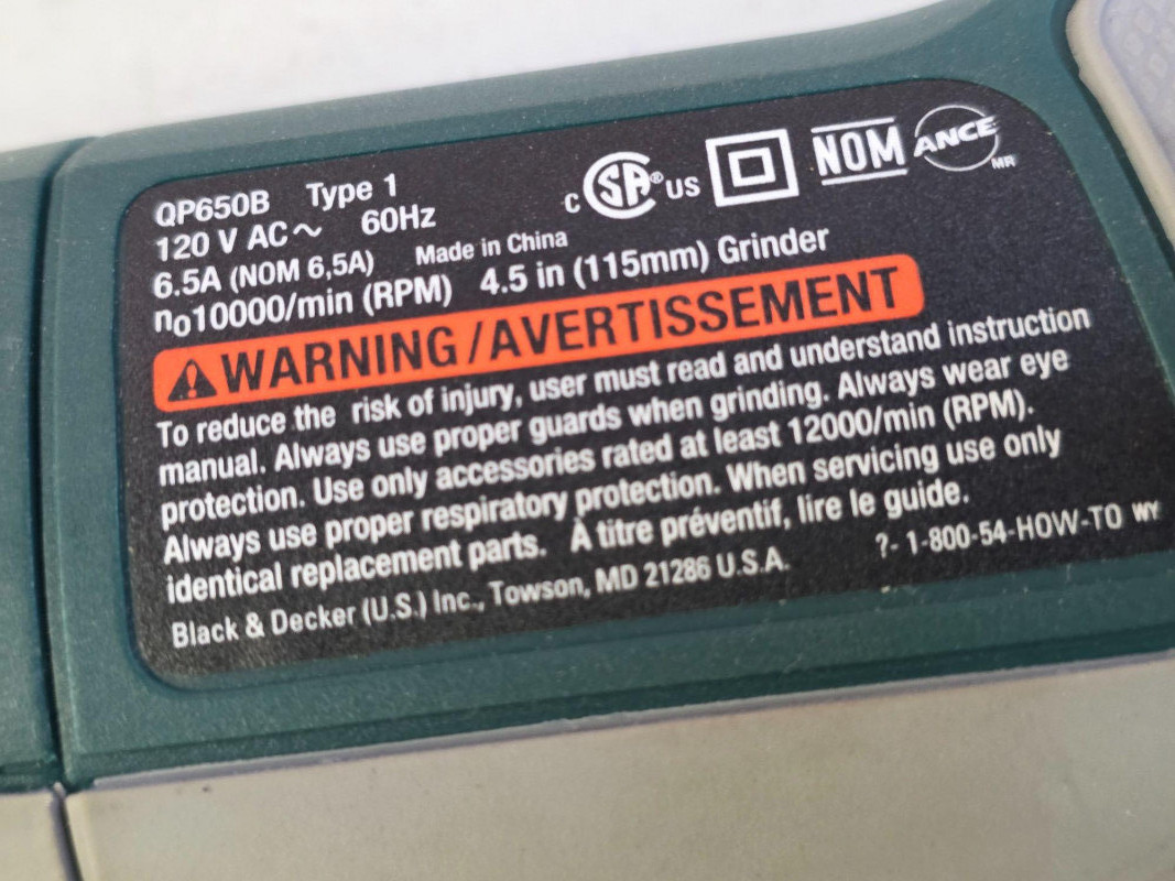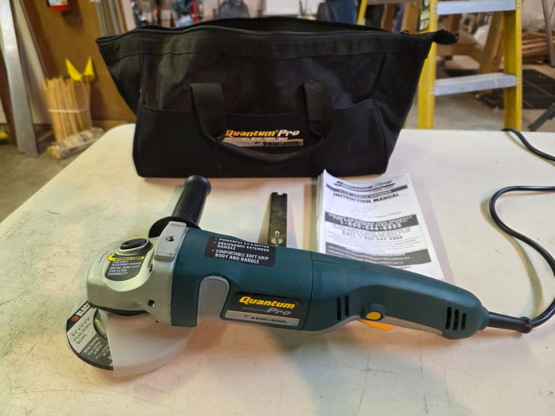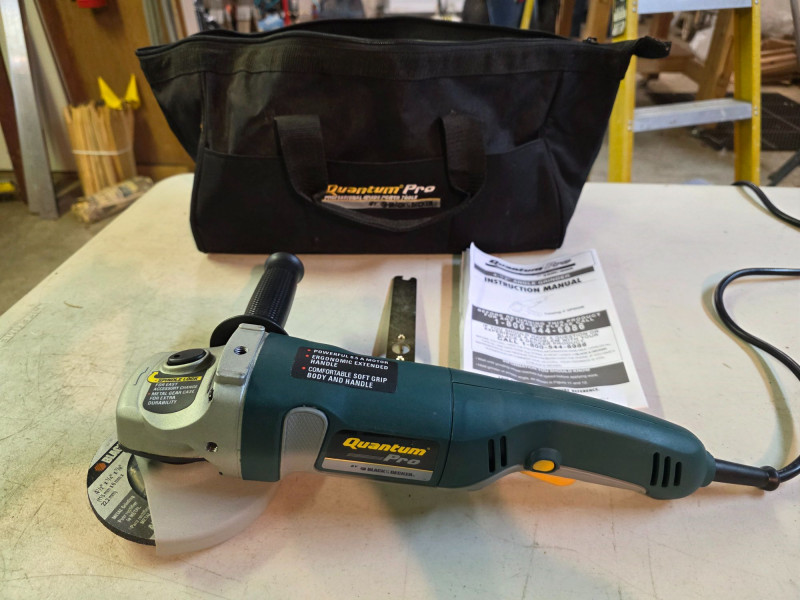 Black & Decker Quantum Pro 4.5" Corded Angle Grinder Black & Decker Model #QP650B Features an ergonomic extended handle, a comfortable soft grip body and handle, and a metal gear case for durability Tested - Works!