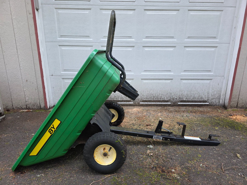 Lot # 245 - John Deere 8 Yard Dump Cart/ Tow-Behind Lawn Trailer