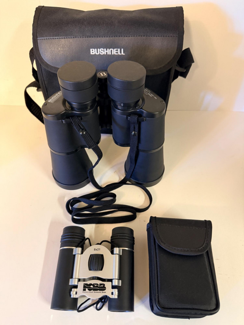 Lot # 250 - Bushnell 10x50 Binoculars & Generic 8x21 Pocket Binocs
