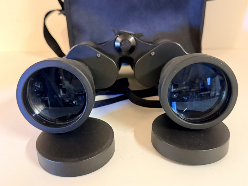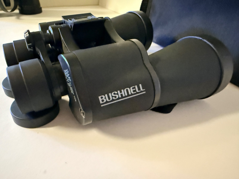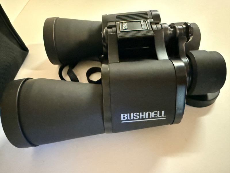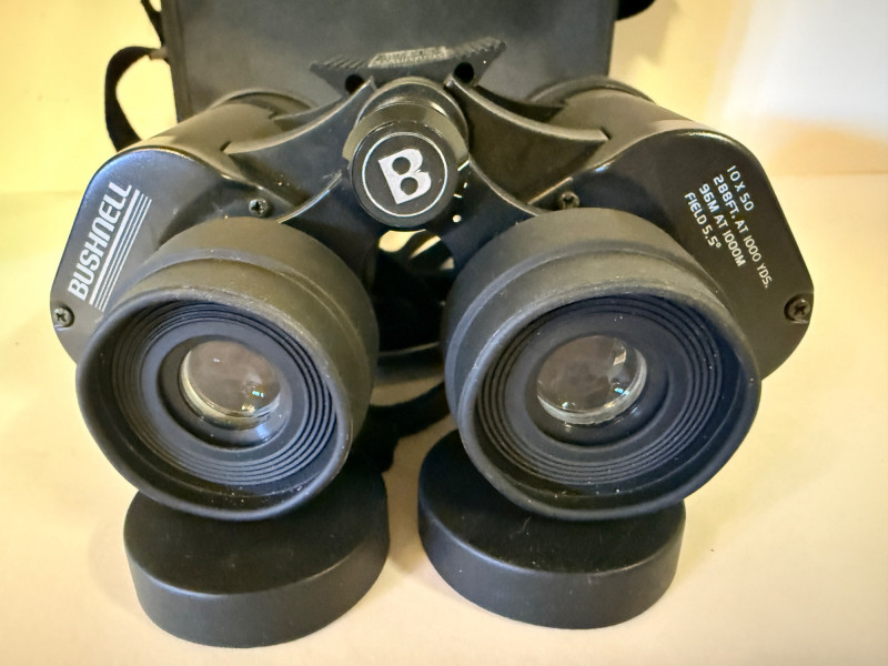 Bushnell 10x50 Binoculars & Generic 8x21 Pocket Binocs Bushnell - 288 ft at 1000 yards With lens covers and storage/carry bag. Generic bank promo pocket binoculars in pouch.