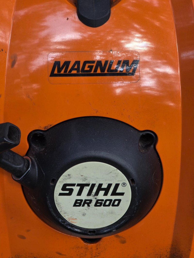 STIHL BR 600 Magnum Professional Gasoline-Powered Backpack Blower Engine: 64.8 cc 4-MIX® engine. Performance: Features a blowing force of 35 Newtons and an average air velocity of 165 mph. Design: Equipped with a four-point anti-vibration system and ergonomic shoulder straps for professional use Tested - Works!