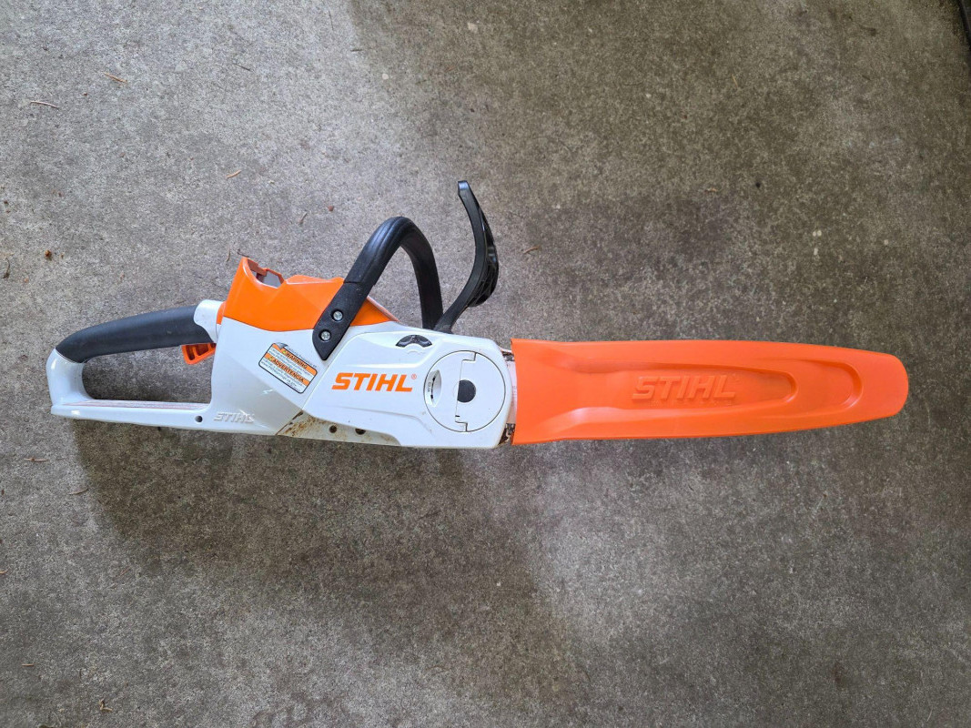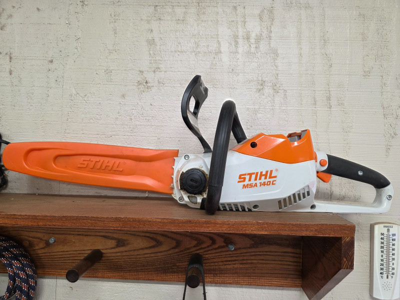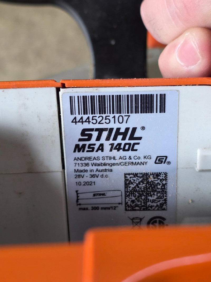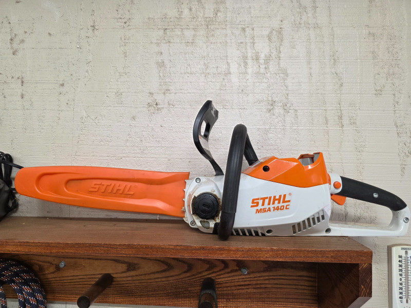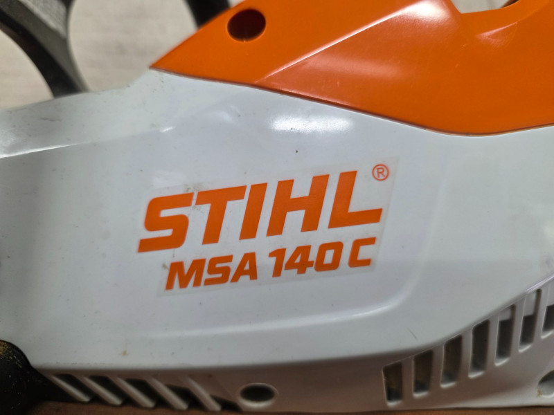 STIHL MSA 140C 36V Cordless Chainsaw, Battery & Charger Lightweight model designed for residential use, such as pruning and cutting small branches or firewood 36V lithium-ion battery-powered (compatible with the STIHL AK System). Equipped with a 12-inch guide bar. Approximately 8.6 lbs (with battery), making it highly maneuverable for home yard maintenance. Features a Quick Chain Adjuster (QCA) for tool-less tensioning Includes 36V LIthium-Ion Battery (STIHL AK30), 36V charger (STIHL AL101) and chain guard Tested - Works!