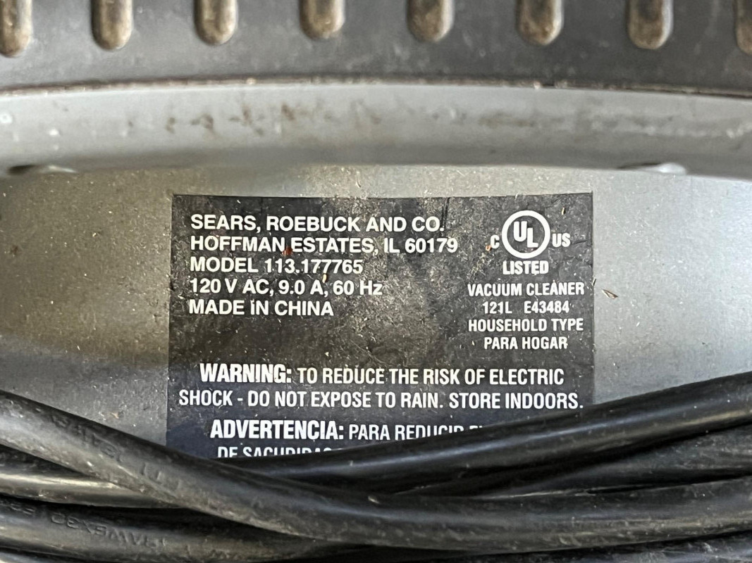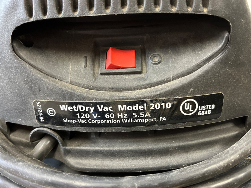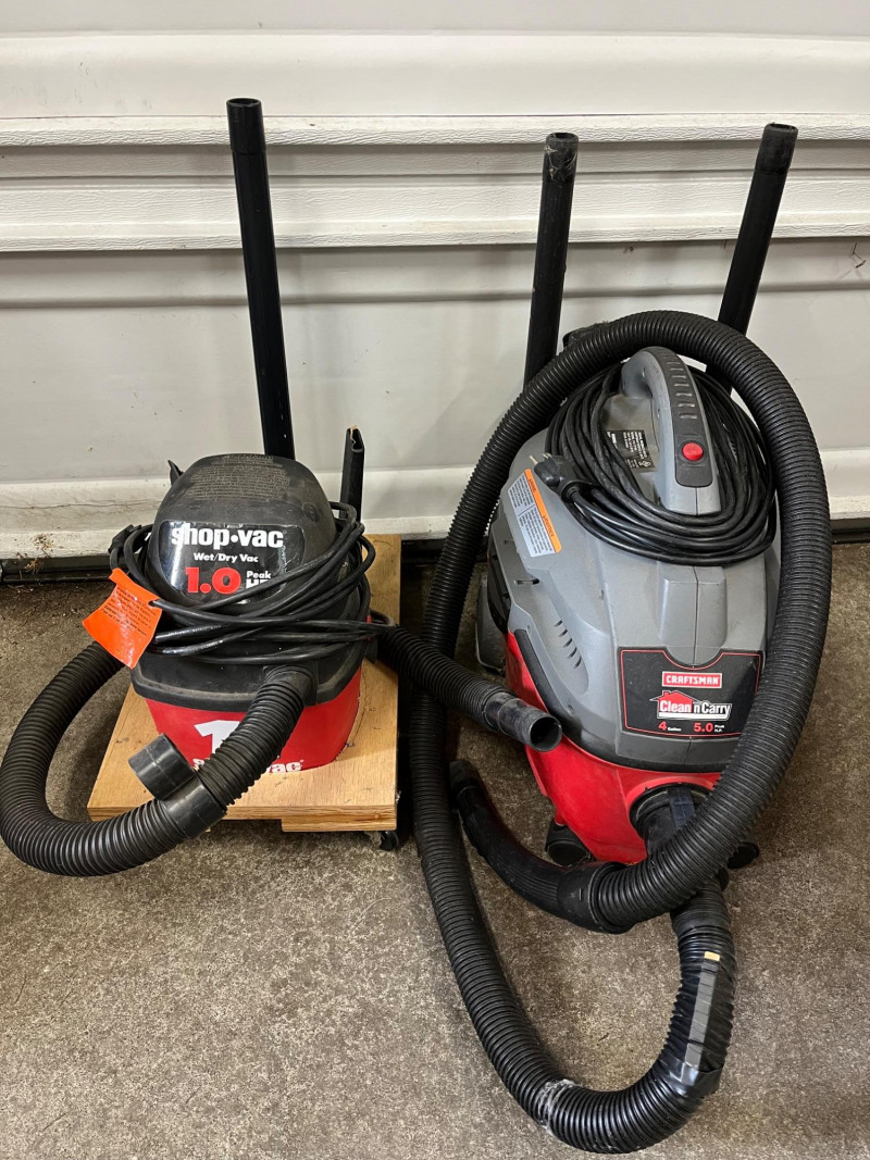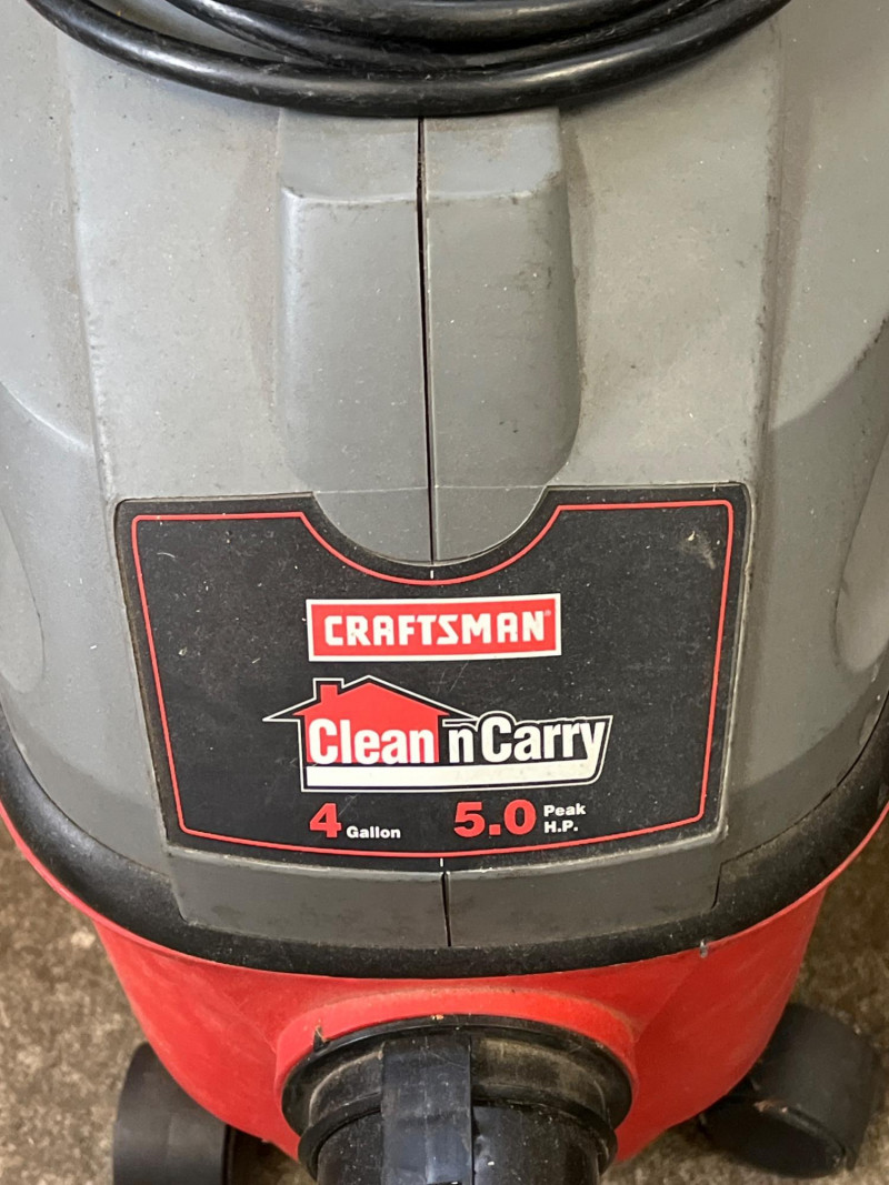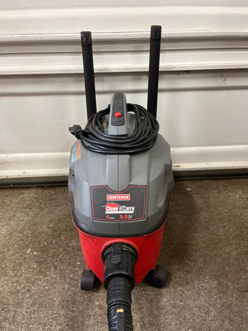 4 Gal. Craftsman Clean n Carry & 1 Gal. Shop-Vac Wet/Dry Vac Craftsman Clean N Carry 4 Gallon 5.0 Peak HP wet/dry vacuum, Model # 113.177765. This portable shop vac is designed for both liquid and dry debris cleanup. 4-gallon tank and a 5.0 peak horsepower motor. Comes with attachments. Tested: Works. Shop-Vac Wet/Dry Vac Model # 2010 Compact utility vacuum manufactured by the Shop-Vac Corporation. Electrical: 120V, 60Hz, 5.5A. 1.0 Peak HP. Tested: Works.