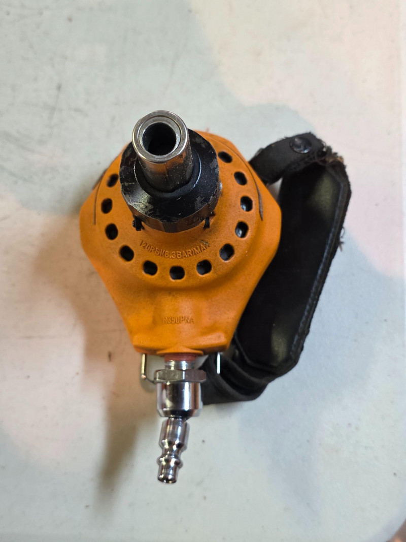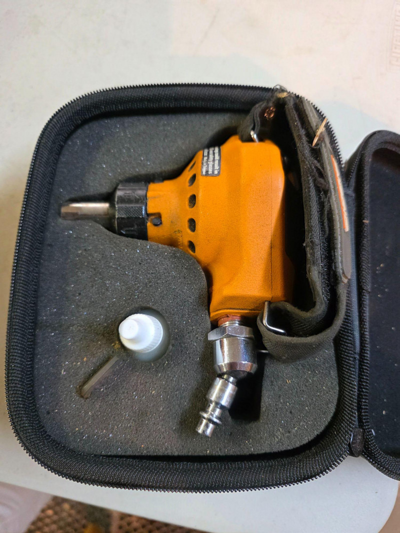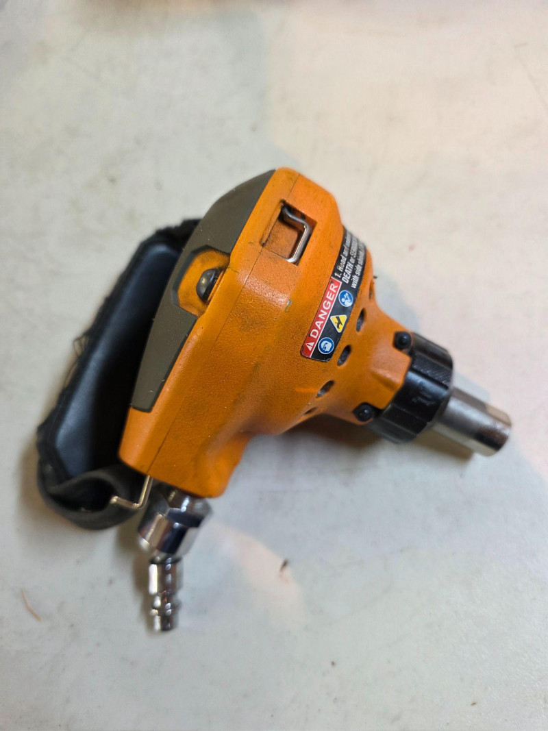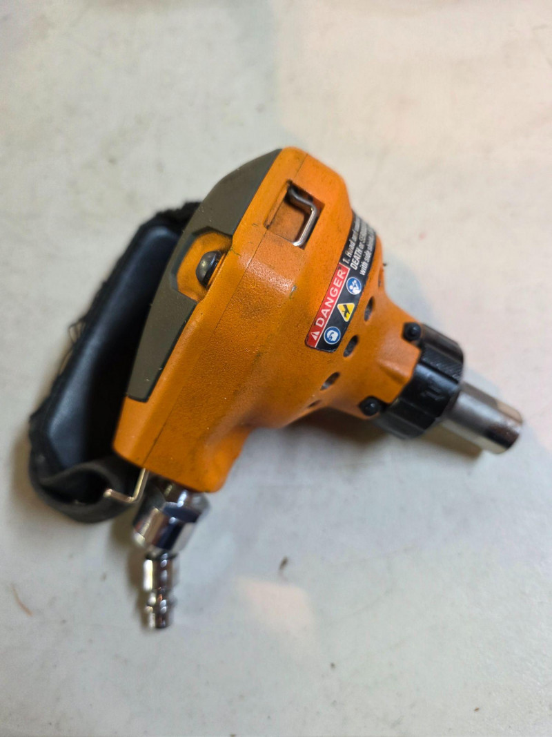 Ridgid 3-1/2" Full-Size Palm Nailer Ridgid Model #R350PNA Pneumatic tool designed to be powered by compressed air Engineered for driving nails into tight spaces or overhead where a conventional hammer cannot swing Features a magnetic nose to securely hold fasteners for accurate placement and a strap for hand comfort Includes padded zipper case, oil & hex wrench Untested!