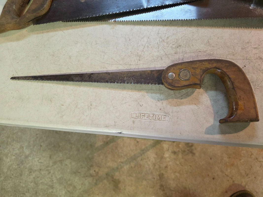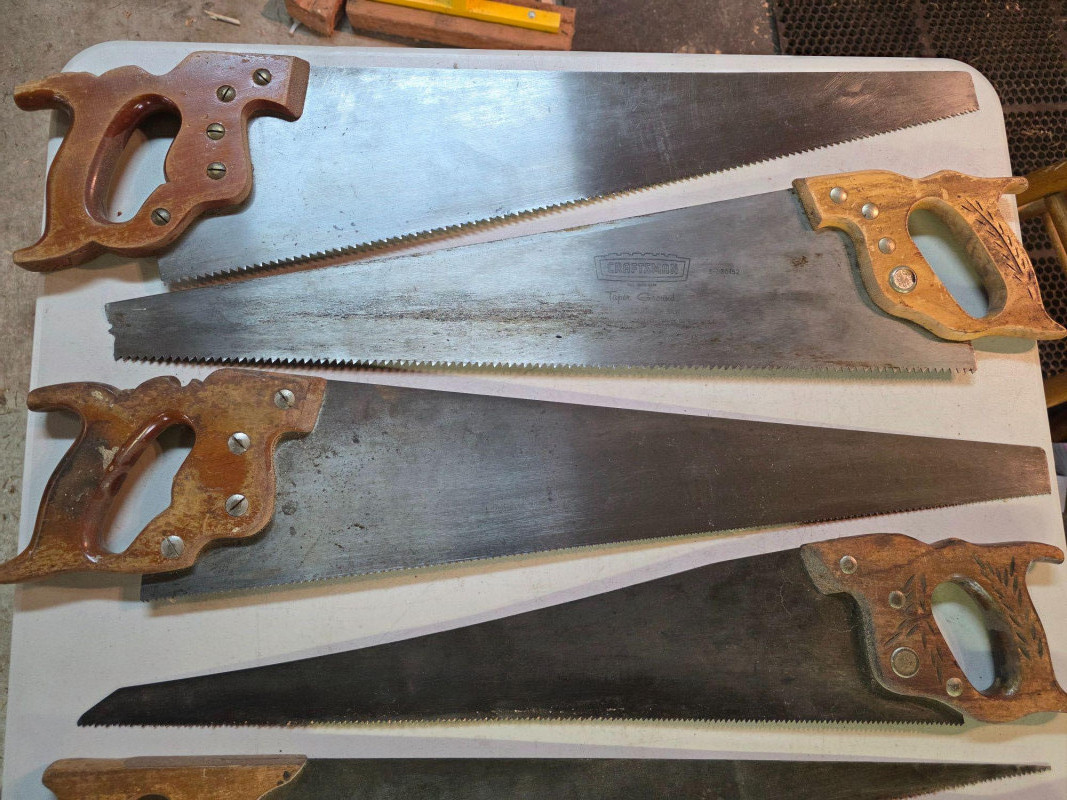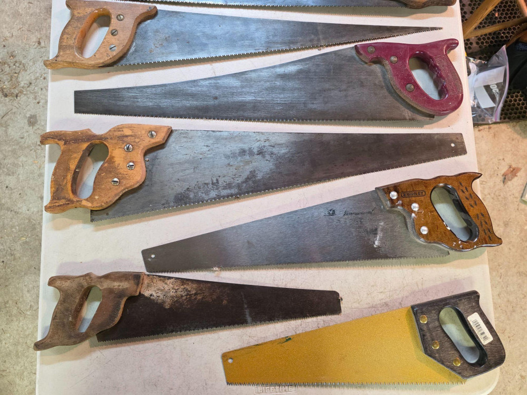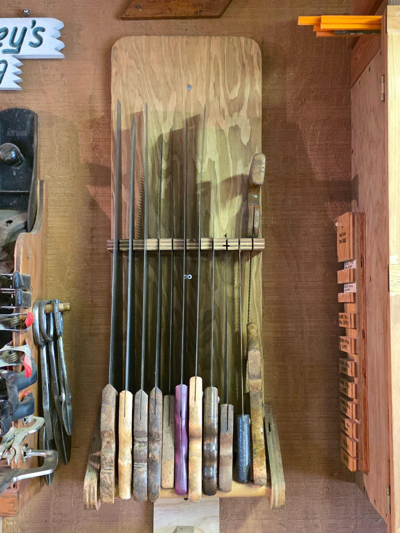 (11) Wood Saws With Hand-Made Wall Storage Rack Saws range from 11" - 29" Hand-made wall rack for storage is pretty neat! Wall Rack is 35"T x 13.5"W x 7.5"D