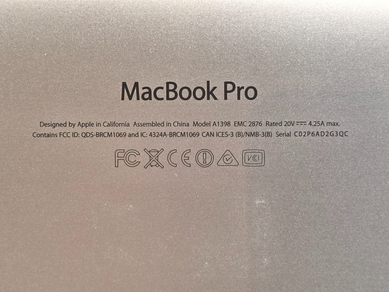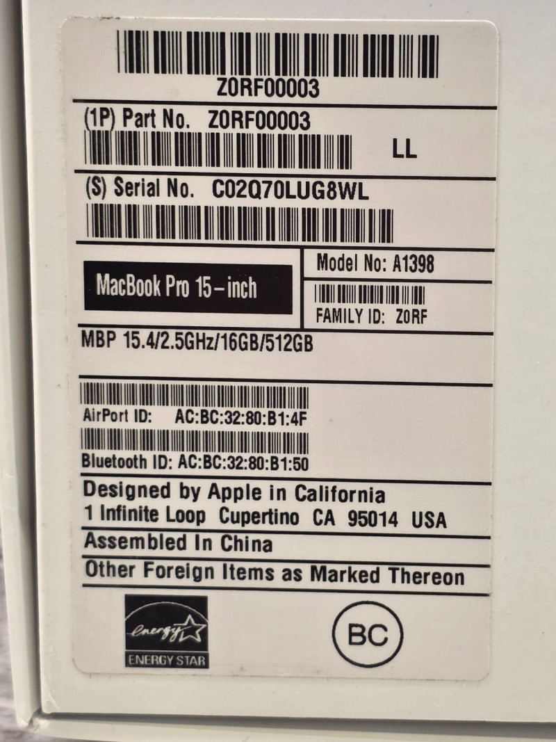 MacBook Pro 15" Retina Display With 2.56Ghz Intel Core I7, 16GB RAM, 512GB SSD Apple Model #A1398 Apple Serial #C02Q70LUG8WL Manufactured 2014 Processor: 2.5 GHz Core i7 (I7-4870HQ) Memory: 16 GB DDR3L SDRAM (Onboard) Storage: 512 GB SSD Graphics: Intel Iris Pro 1536 MB and NVIDIA GeForce GT 750M OS: Shipped with macOS 10.9.4, supports up to macOS 11.0 (Big Sur) Port Selection: Two Thunderbolt 2 ports, two USB 3 ports, an HDMI port, an SDXC card slot, and a MagSafe 2 power port. MacBook Pro has been reset and is ready to go! Includes original box & power cable Tested - Works!