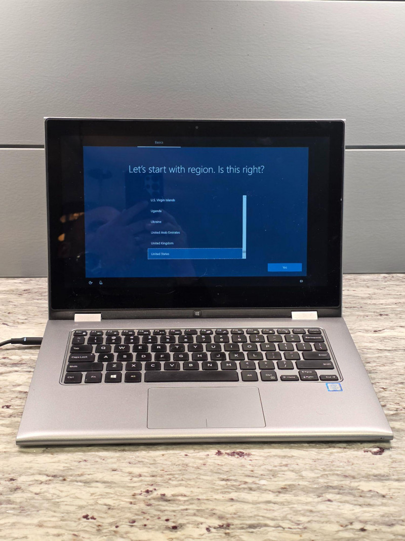 Dell Inspiron 13 7000 Series 2-in-1 Convertible Laptop/Tablet The regulatory model number P57G refers to several specific models within this series, most commonly the Inspiron 13-7347, 7348, 7352, 7353, or 7359. While exact hardware varies by configuration, common features for these models include: Design: A "convertible" laptop with a 360-degree hinge that allows it to be used as a tablet Display: 13.3-inch touchscreen, often with a choice between HD or Full HD resolution Processor: Features Intel Core i7 processor Memory: Supports up to 8GB of RAM Storage: Originally sold with either a 500GB hard drive (HDD) or a solid-state drive (SSD) ranging from 128GB to 512GB Features: Backlit keyboard and an integrated stylus (stored in a silo on the side) Port Identification Left Side: Charging port, HDMI port, two USB 3.0 ports, and a headset jack. Right Side: Power button, volume rocker, USB 2.0 port, SD card reader, and the stylus silo Dell Inspiron 13 7000 series has been reset and is ready for you to install a valid Microsoft license (not included) Has some stickers on lid that can be removed (see pics for condition) Includes stylus and power cable Tested - Works!