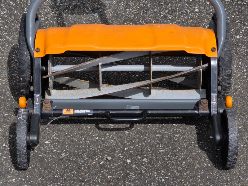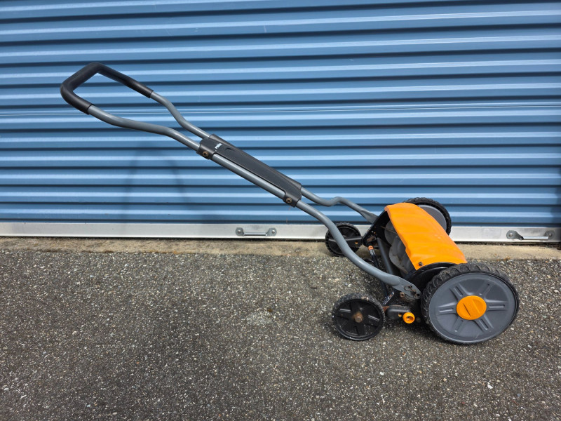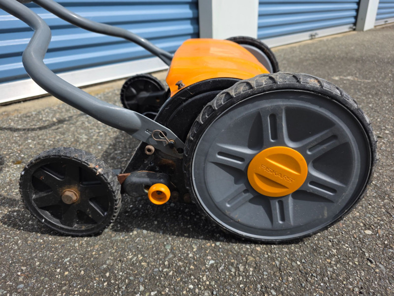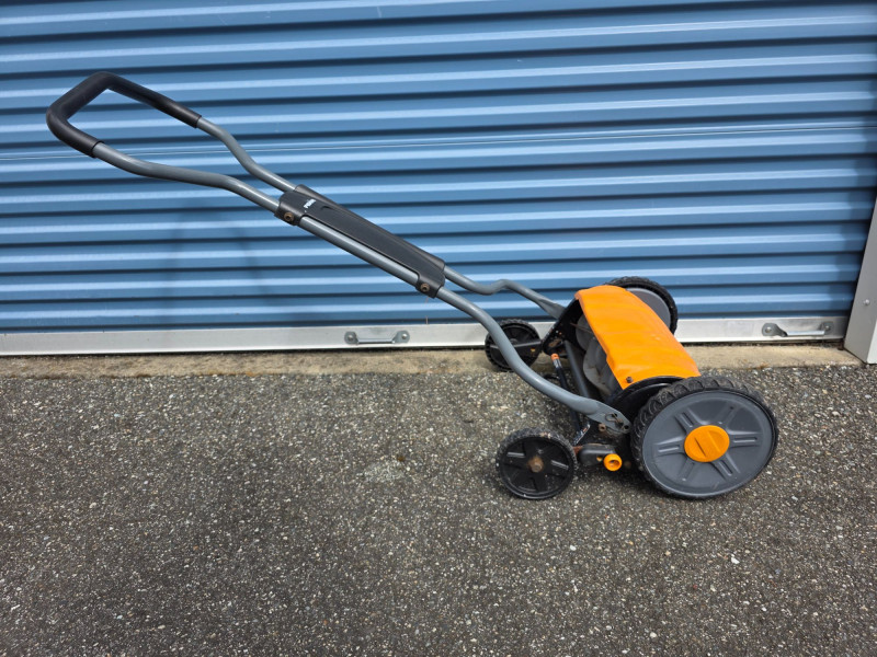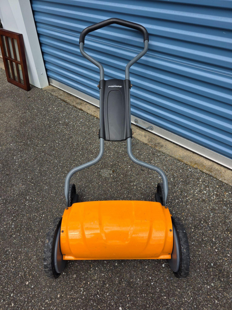 Fiskars 17" StaySharp Manual Push Reel Mower Uses a patented StaySharp cutting system with a contact-free mechanism, which reduces friction and eliminates the need for blade sharpening Designed to be 30% to 40% easier to push than other reel mowers Operates without gasoline, oil, batteries, or electrical cords, providing a quiet cutting experience Features a 17-inch cutting width and a chain-driven "Inertia Drive" for enhanced cutting power Tested - Works!