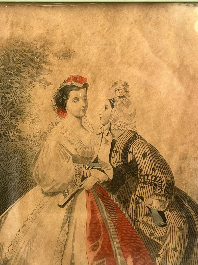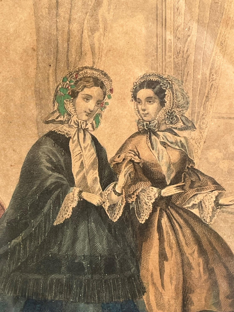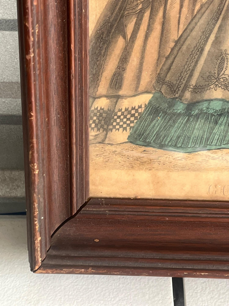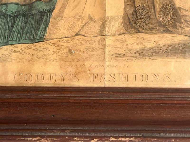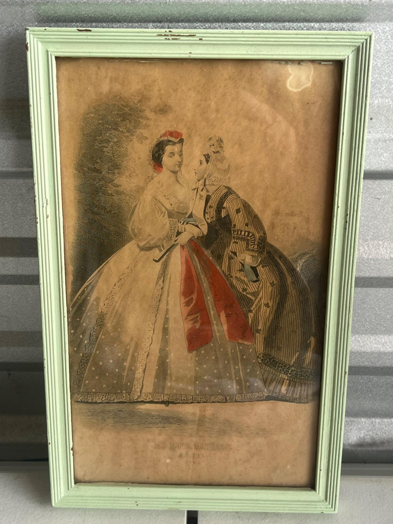 (3) Antique Magazine Clippings Godey’s Fashions clipping. 11.25”Tx13.25”Wx1.5”D Hand colored. Frame has some separation. Les Modes Parisiennes clipping. April 1863 edition. Hand colored. 10.5”Tx6.5”W Home Magazine Clipping. March edition. Hand colored. 10.5”Tx6.5”W