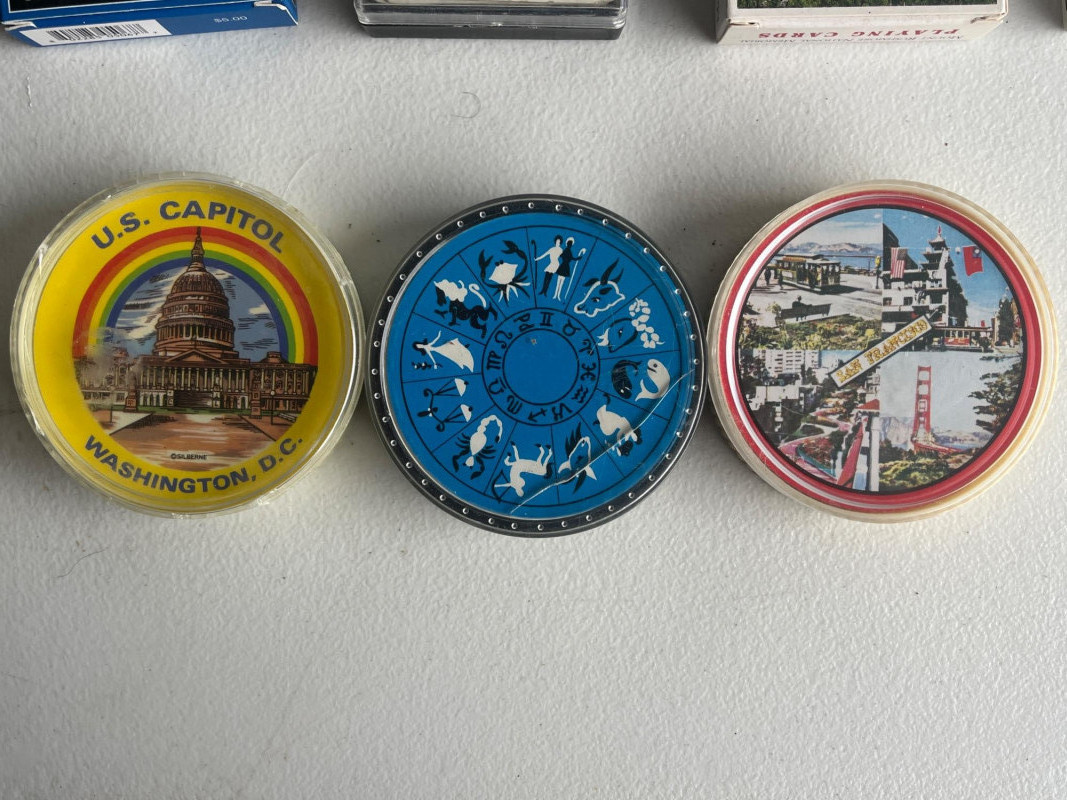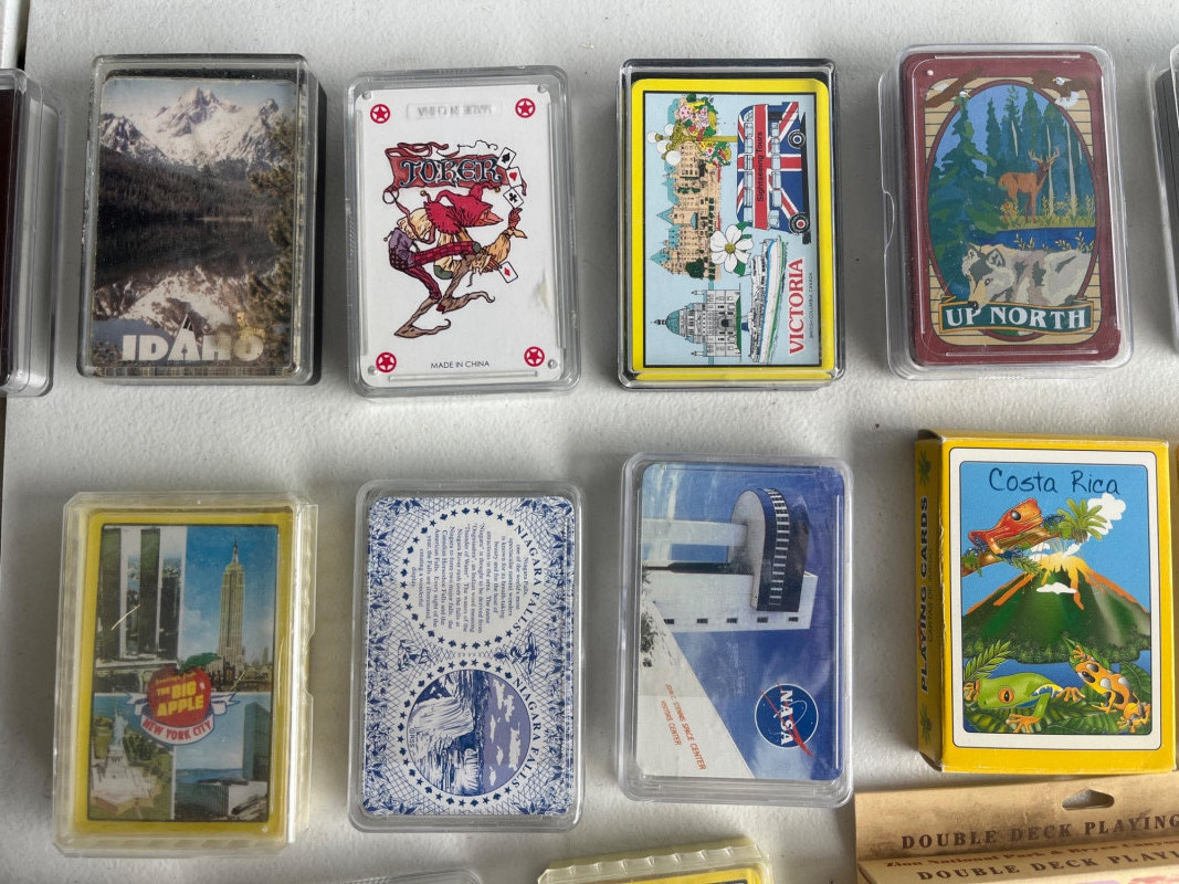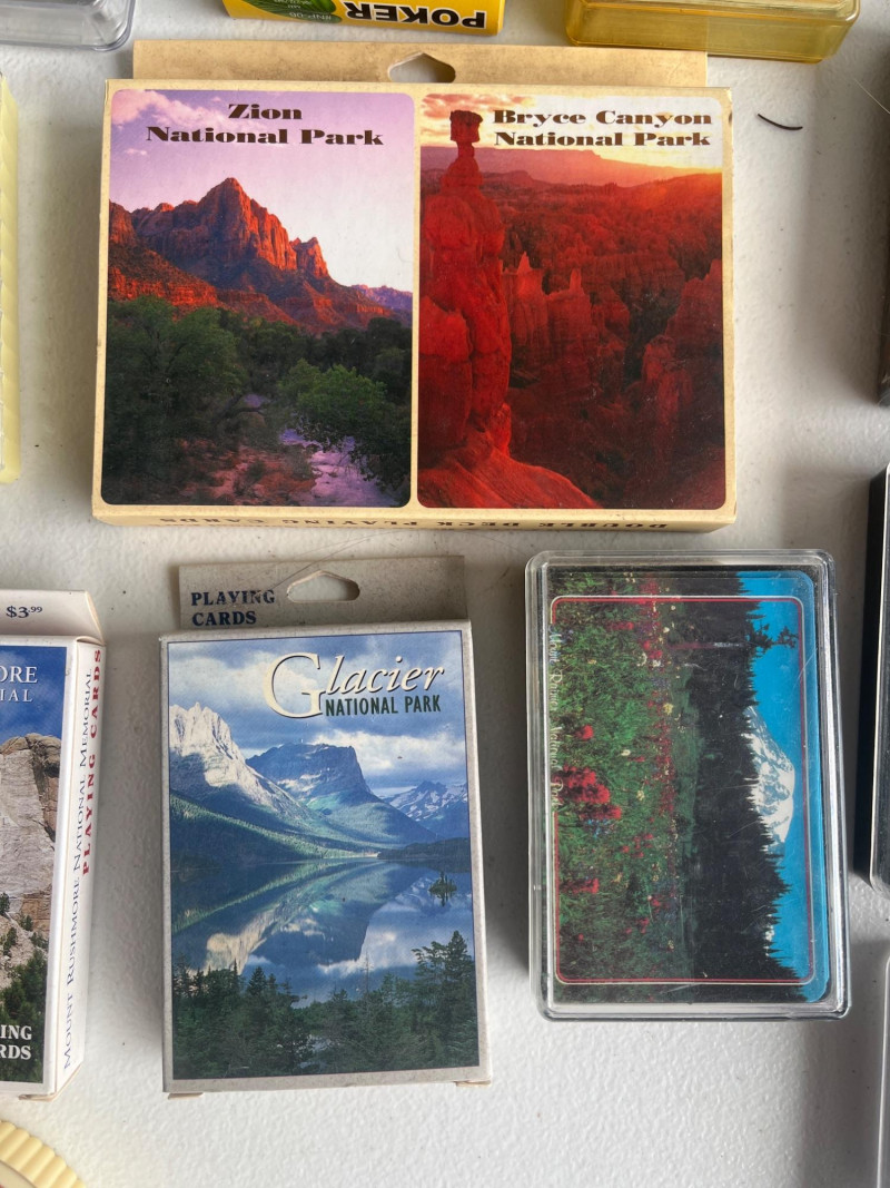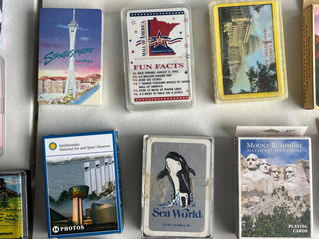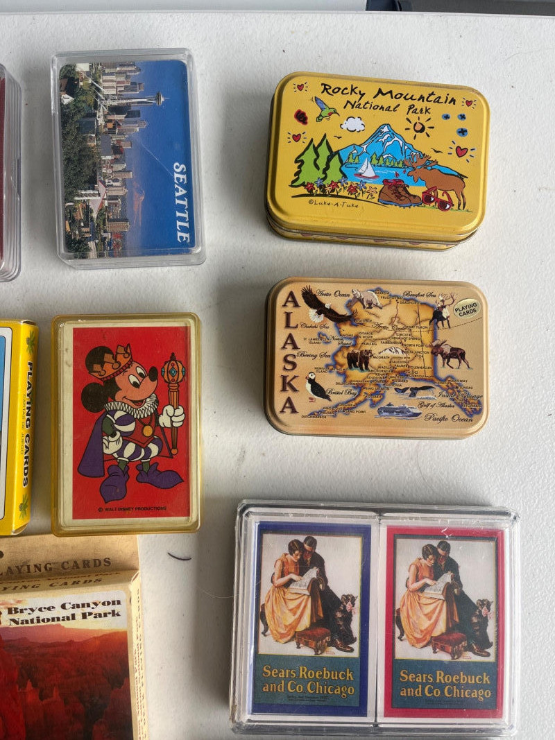 (45) Various Decks of Playing Cards Forty-five sets of playing cards. National park cards, city/state cards, and more! Three sets of circular playing cards. Some NIP. Cards have not been counted.