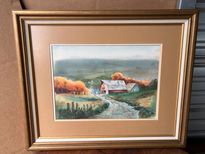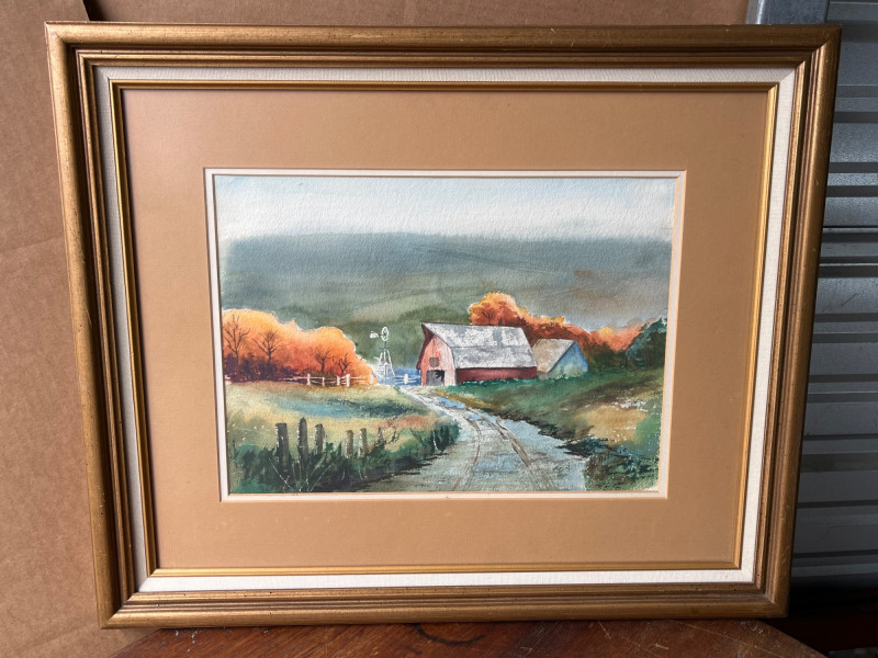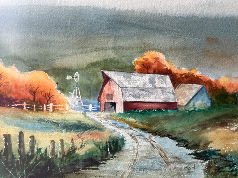 Lot # 118 - Watercolor “Rustic Farm in Autumn” by E. Bailsbie