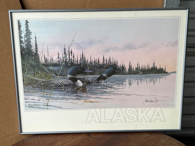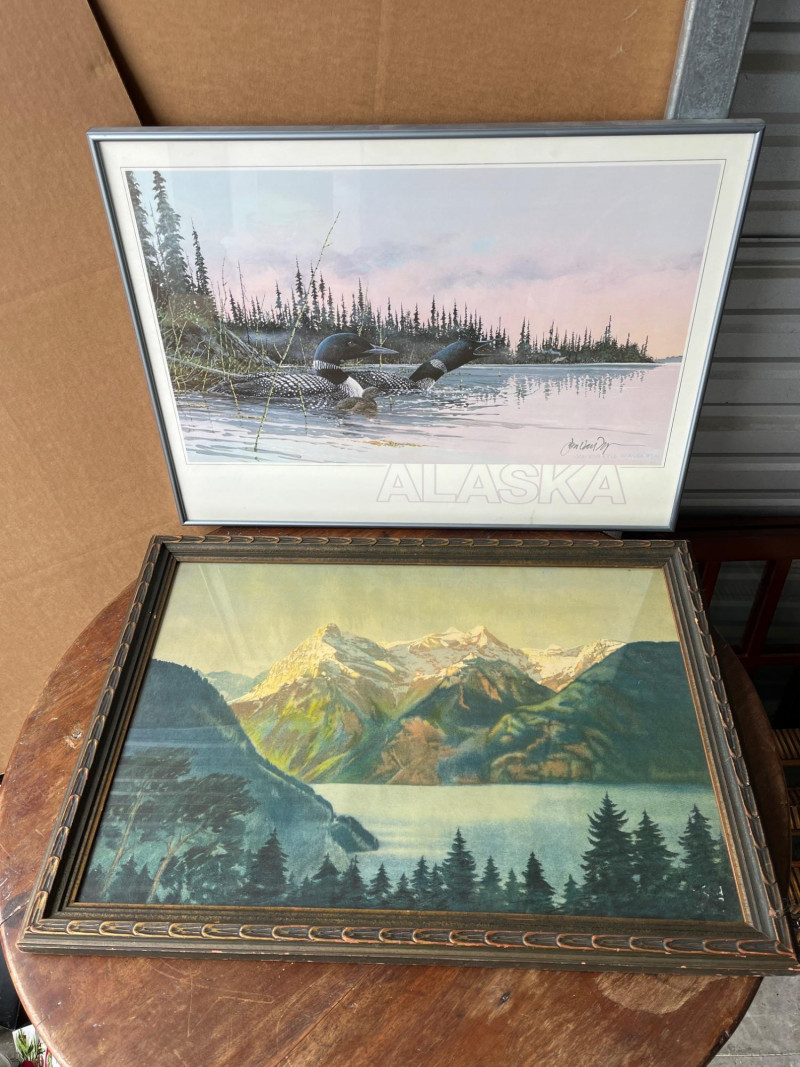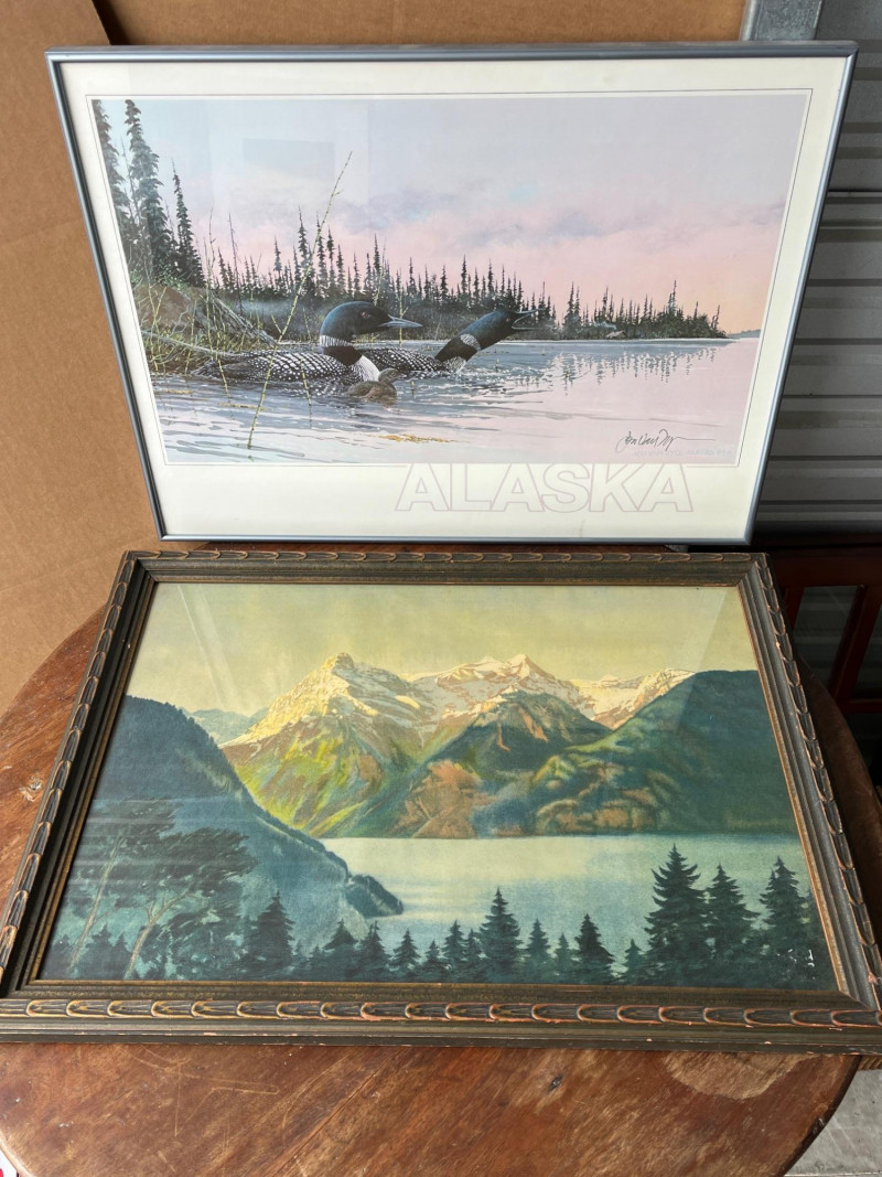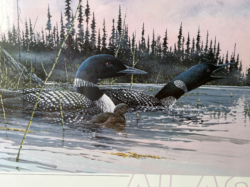 Lot # 119 - “Pair of Loons with their Loonlet” & Original Watercolor Landscape