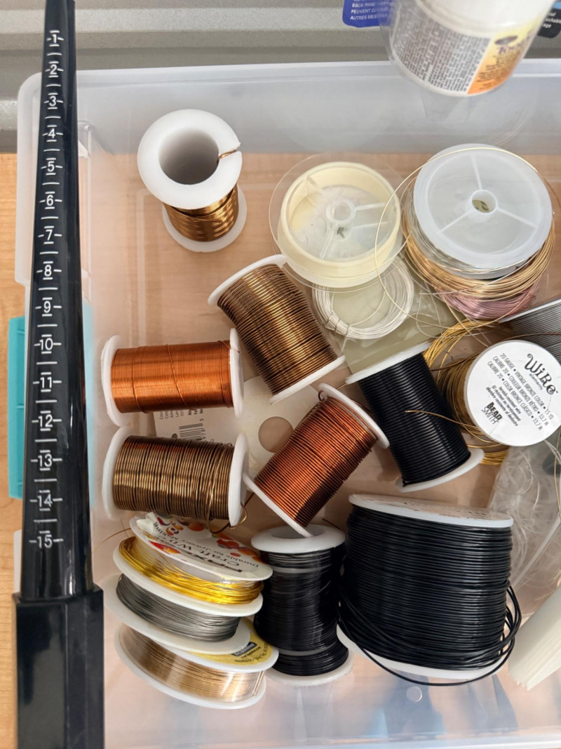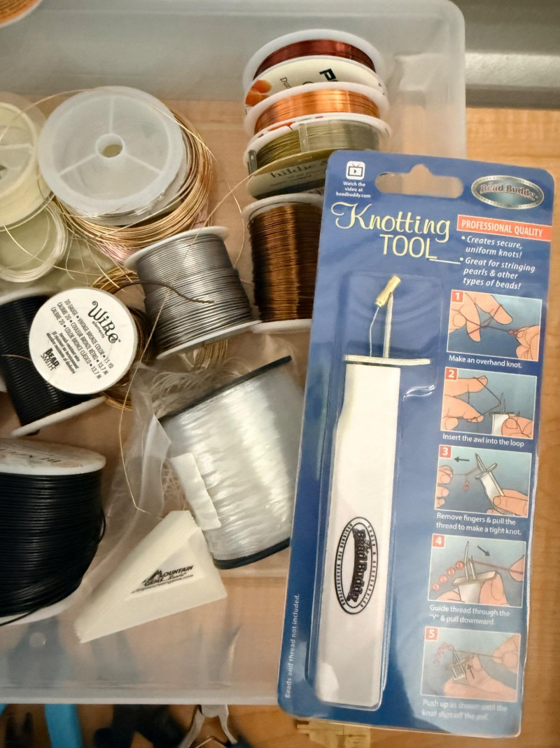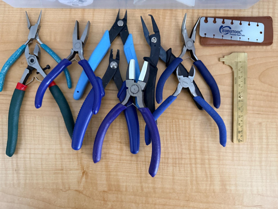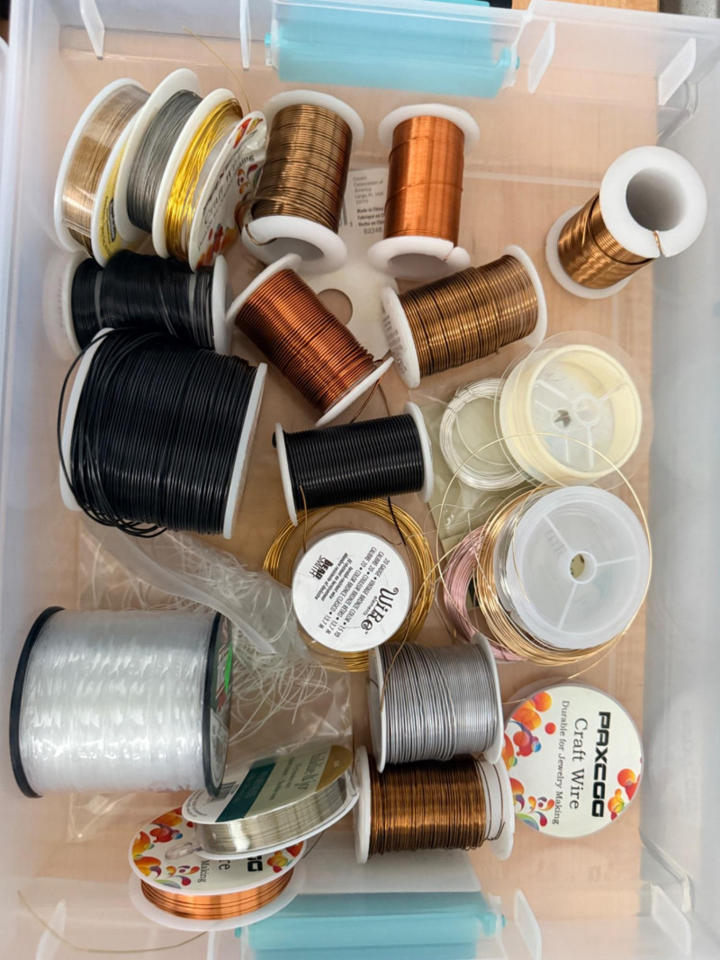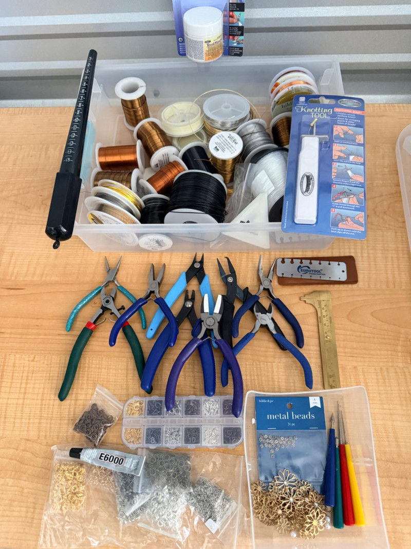 Jewelry Making Wire - Pliers and Tools & Findings 9 Pliers Many spools of wire and fishing line Knotting tool o-rings and beads