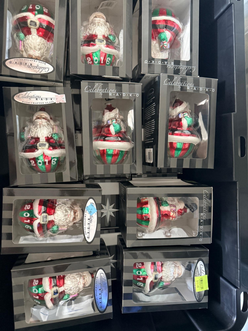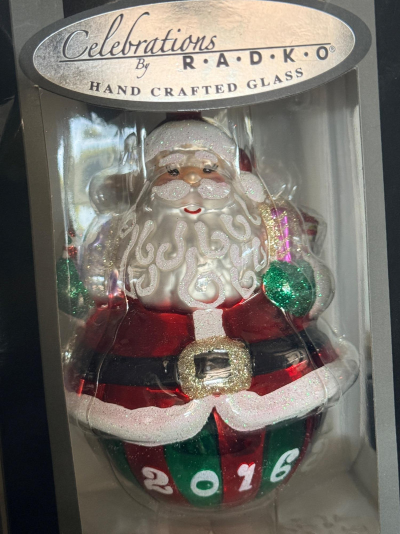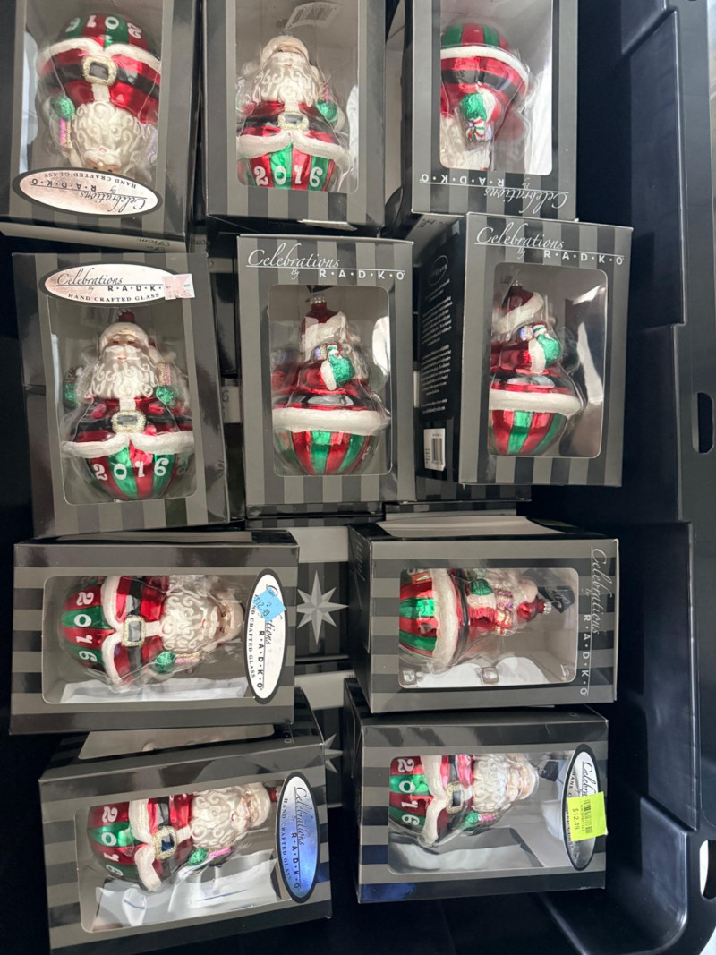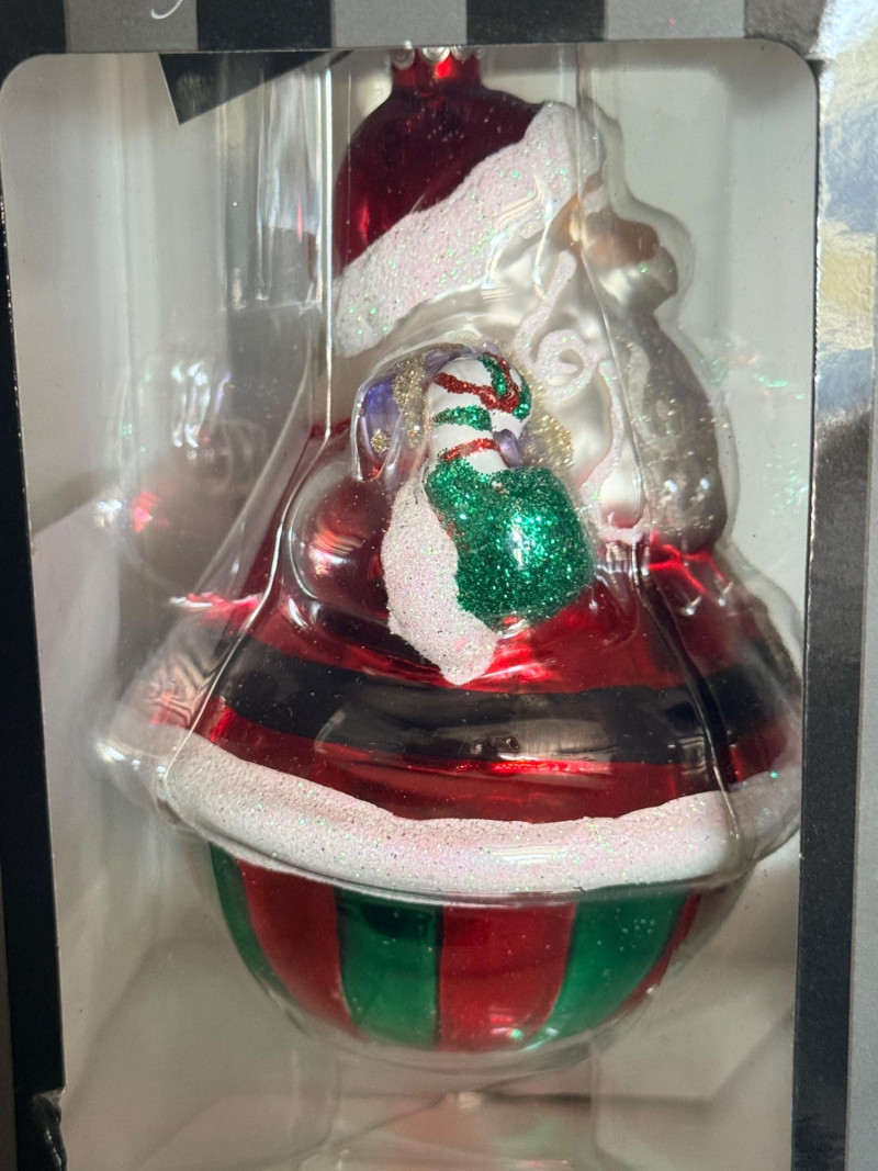 (25) Identical Christopher Radko Striped Ball Santa 2016 In Tote