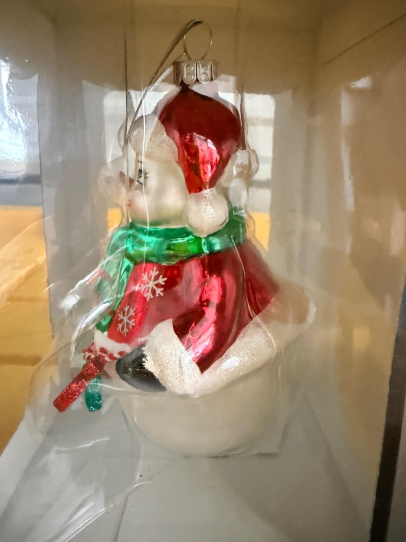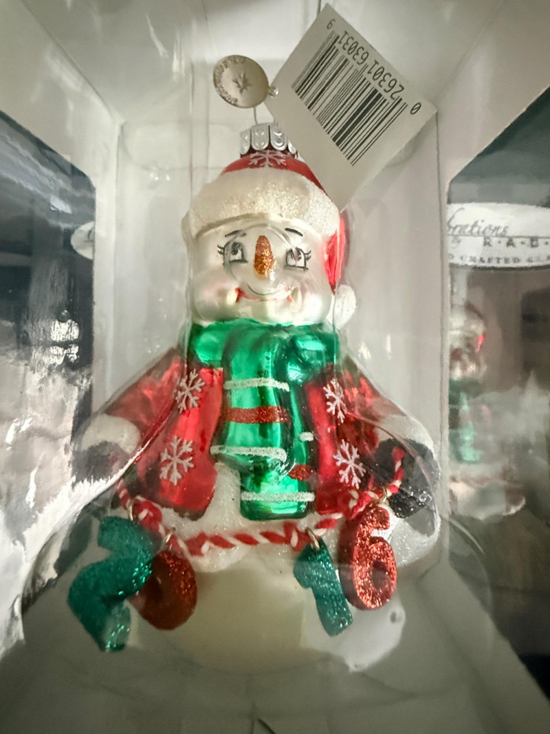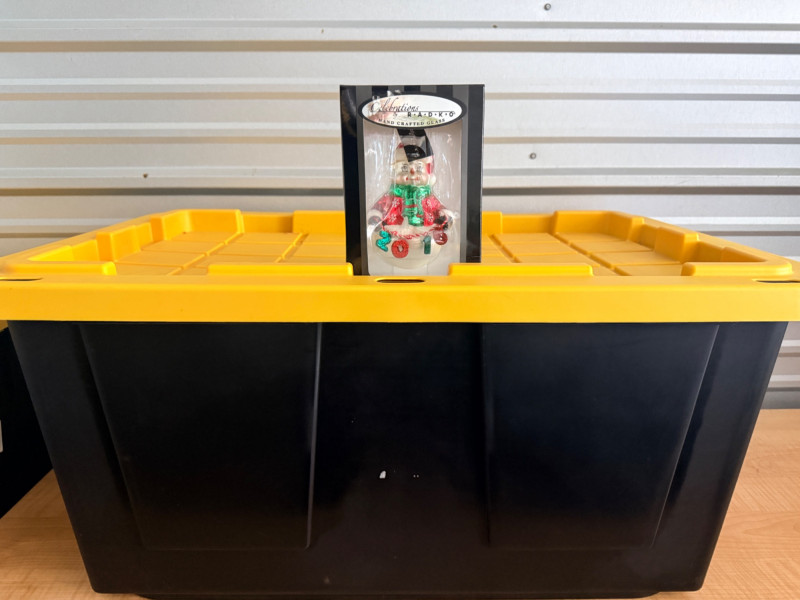 (26) Snowman on a Ball in black and yellow storage tote.