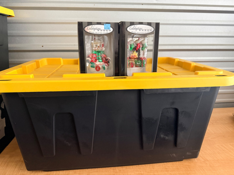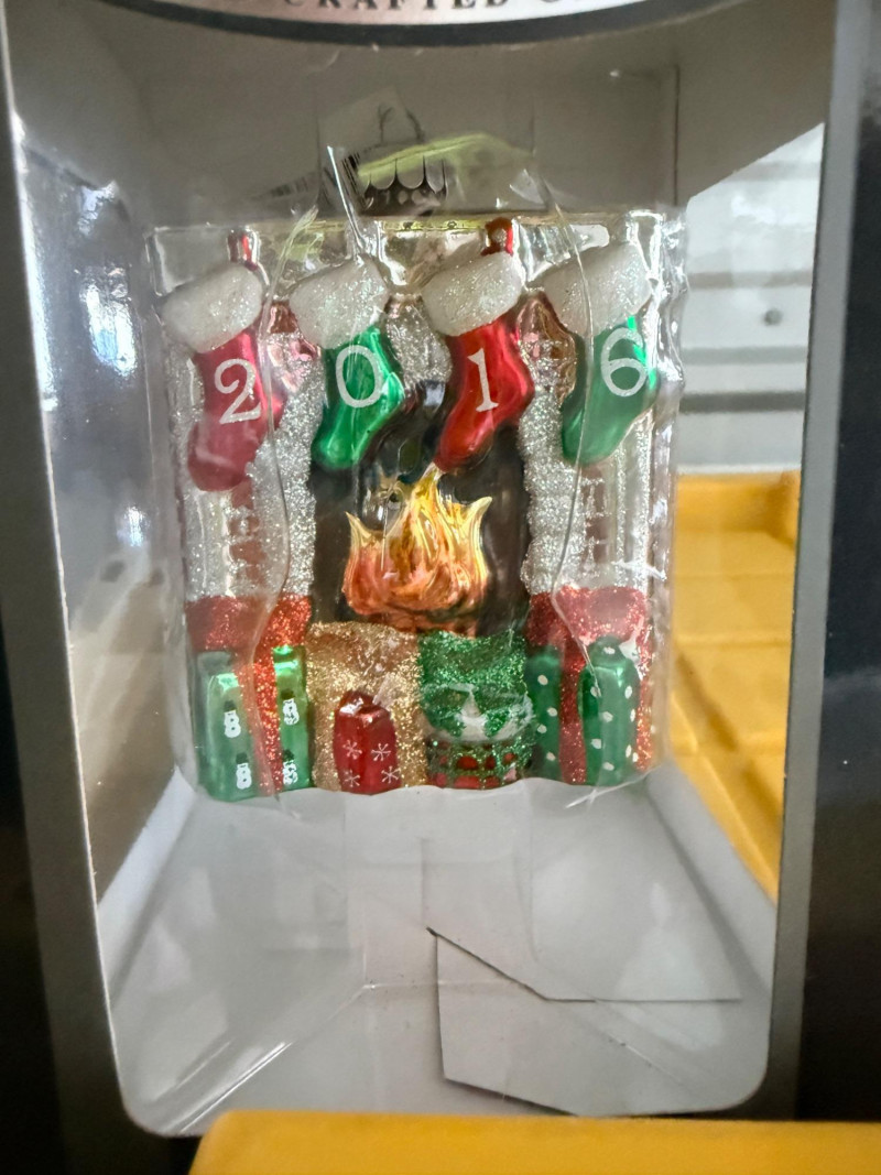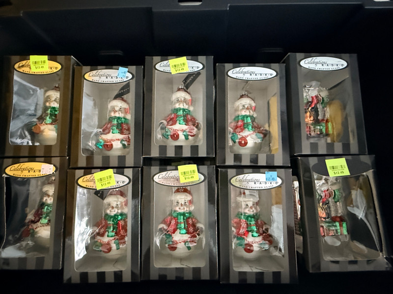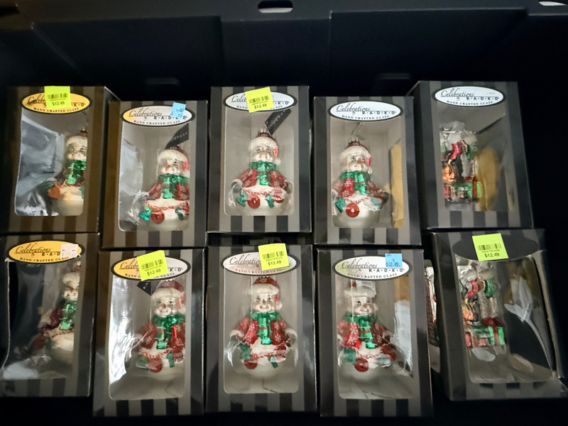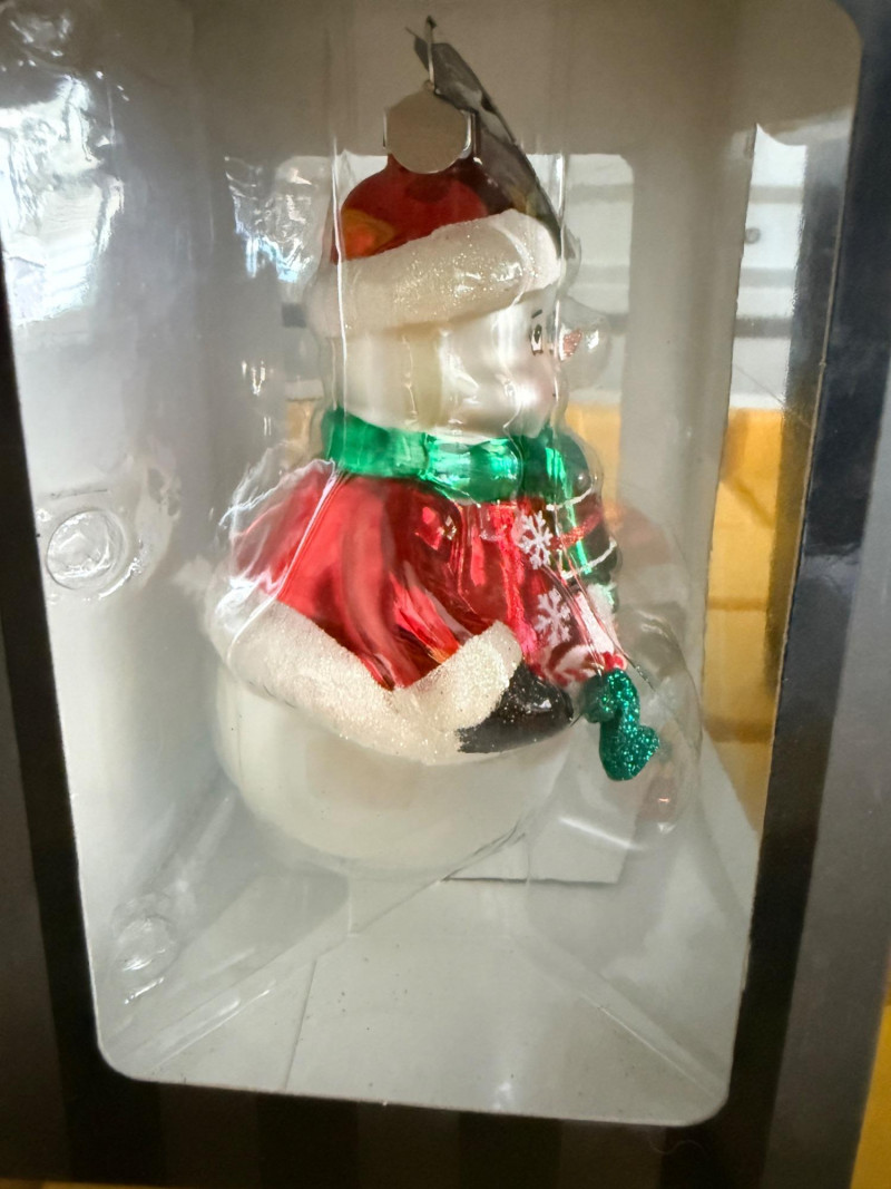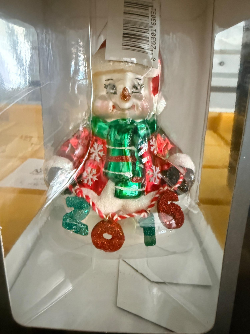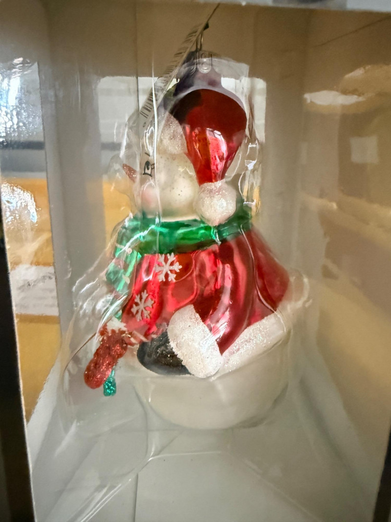 (24) Christopher Radko Hand Crafted Glass Ornaments 2016 (8) Snowman 2016 Includes black and yellow storage tote