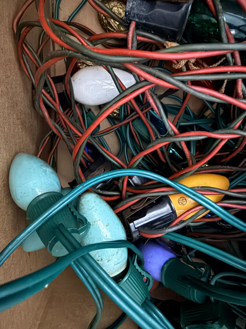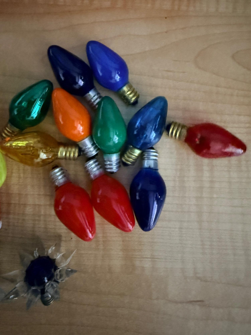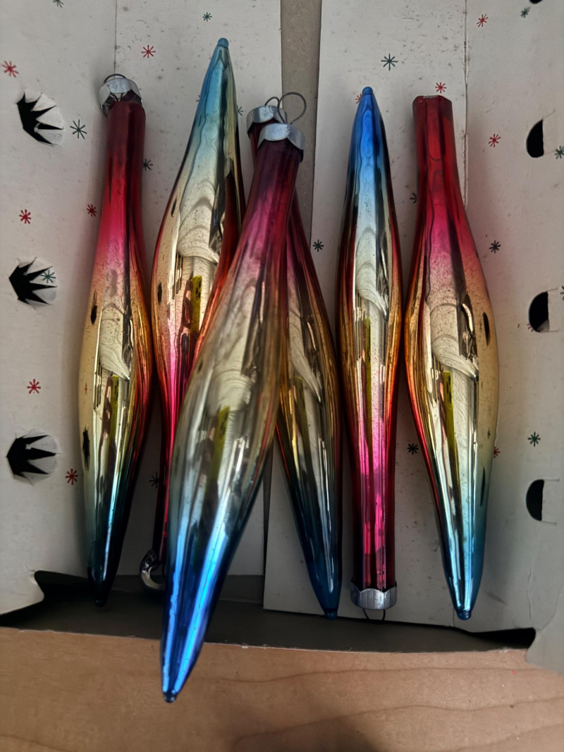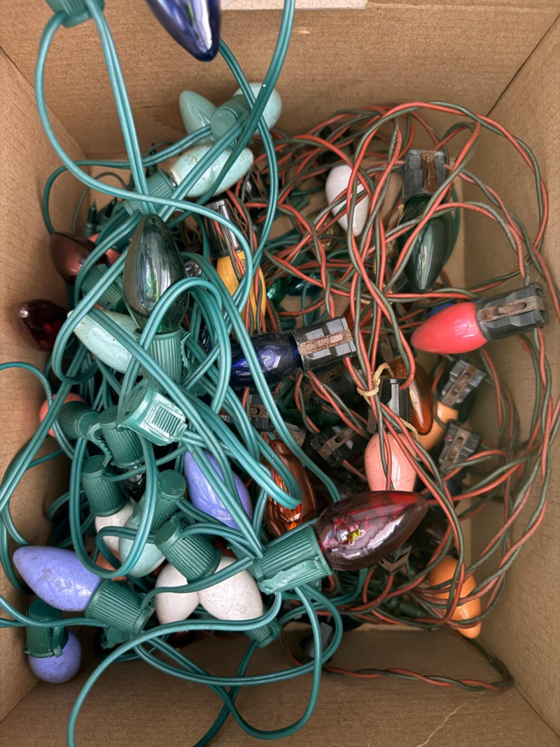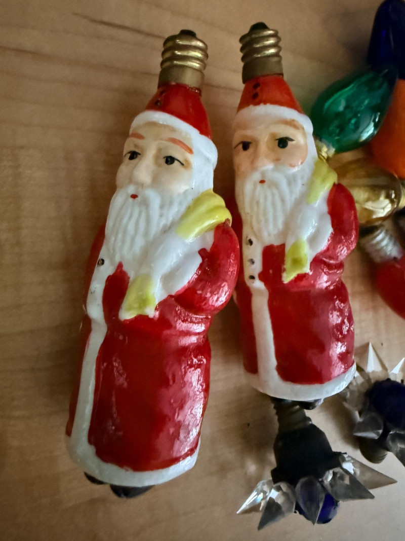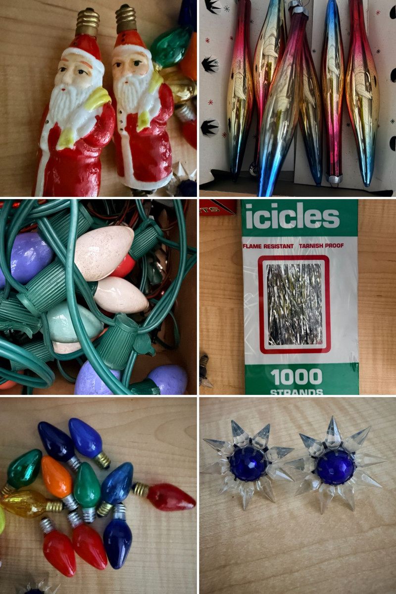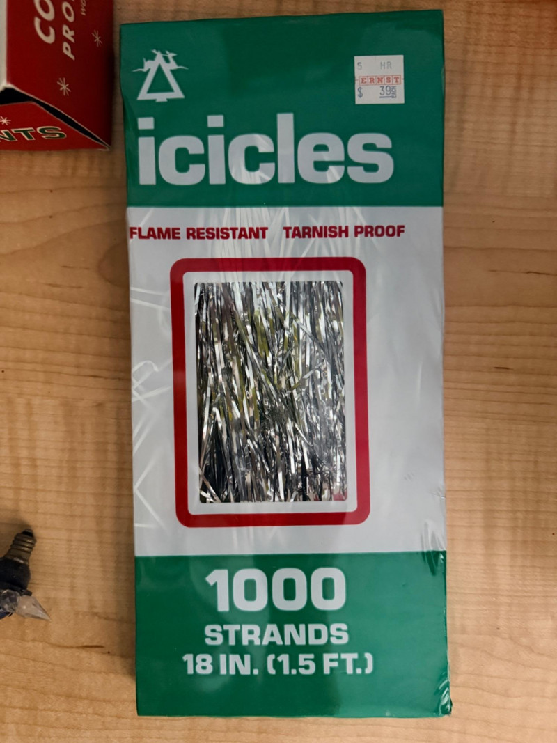 Vintage Glass Ornaments, String Bulbs & C9 Christmas Lights Icicle strands NIP Lights not tested.