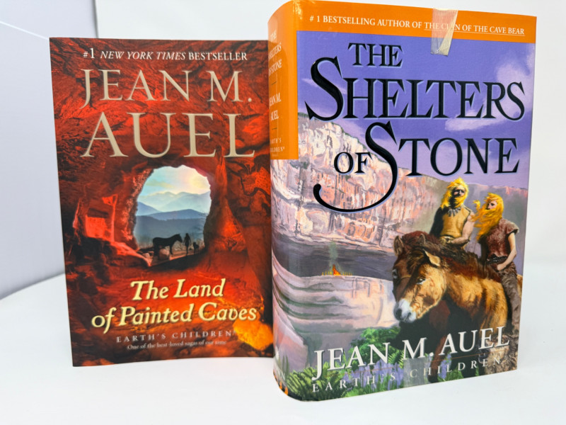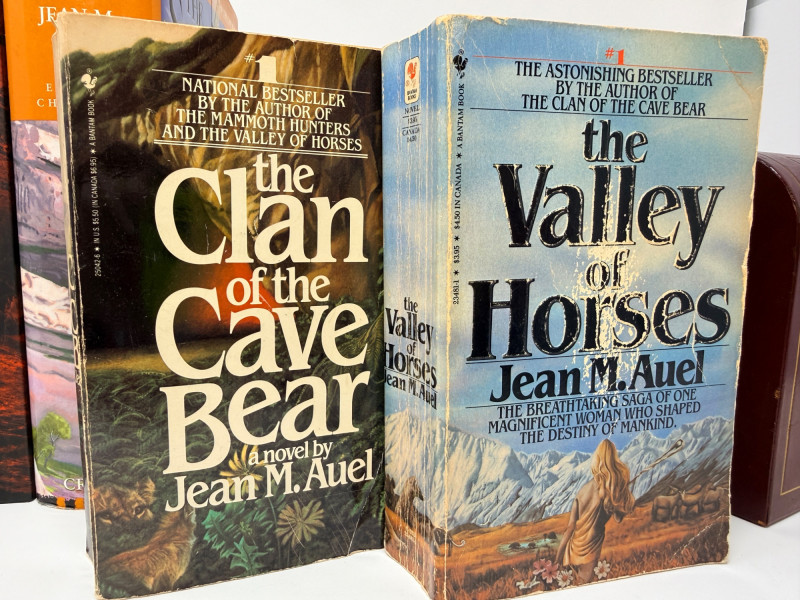 Lot # 149 - Burgundy Leather & Gold Bookends & Jean M Auel Books