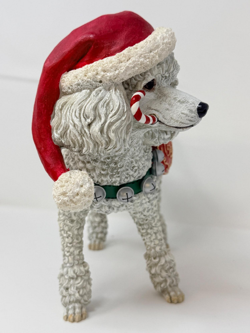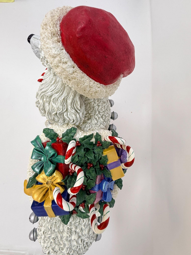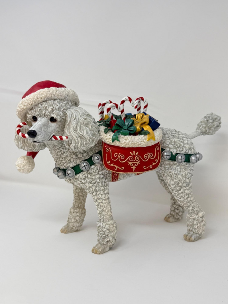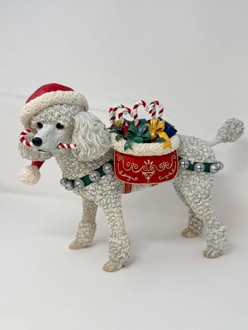 Rare Danbury Mint Christmas Poodle Manufacturer: Danbury Mint. Material: High-quality resin. Dimensions: Approximately 10 inches tall and 12 inches long