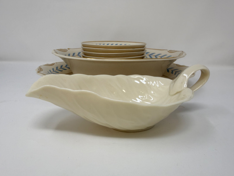 Old Ivory Syracuse China -O.P.CO Made in America Oval bowl is 7.5”x10.25” Small bowls are 5” Includes an ivory Lenox gravy boat.