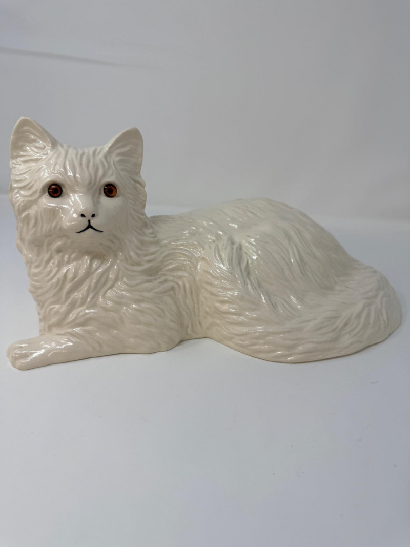 Ceramic white Persian cat figurine Appears to be a Nielson mold and signed by Vera Gethman 12”x6.5”x6.4” tall