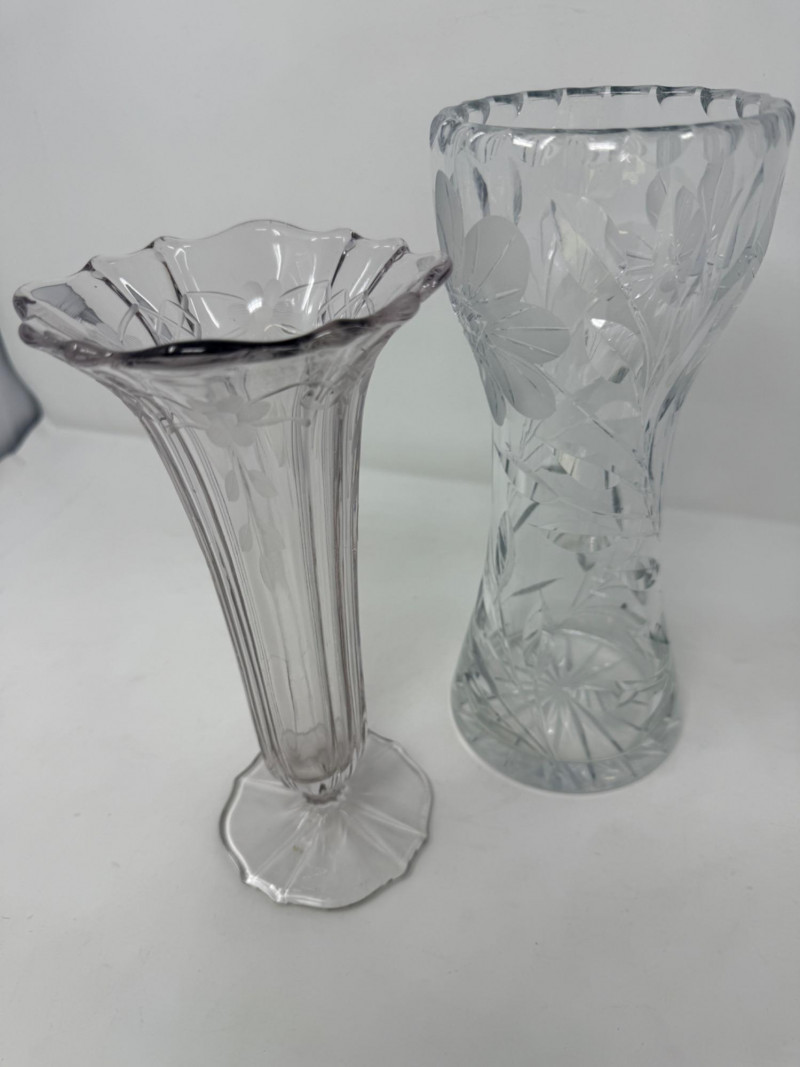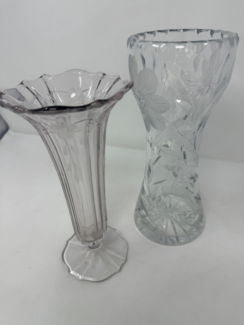 American Brilliant Period Corset Vase & Art Deco Trumpet Vase