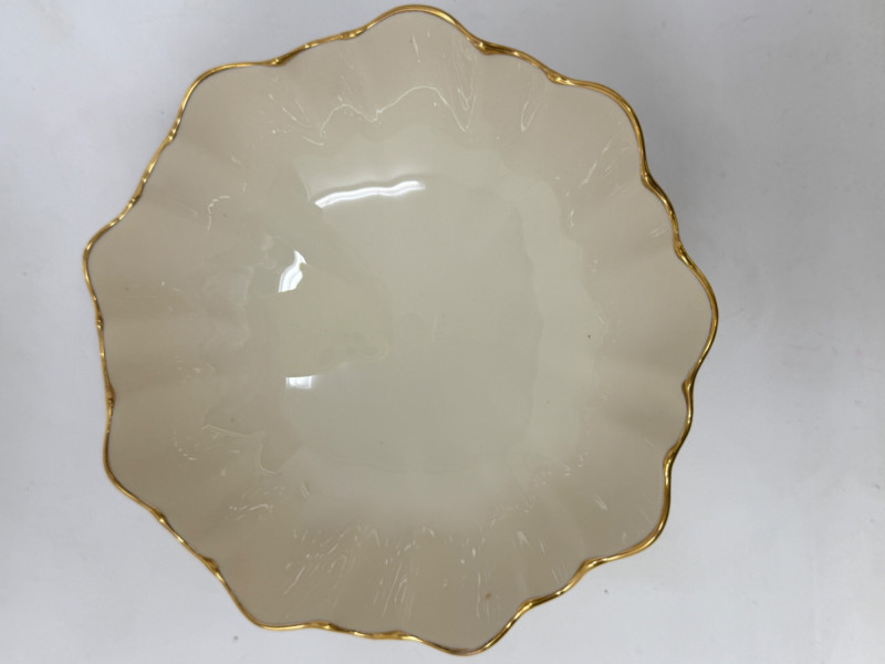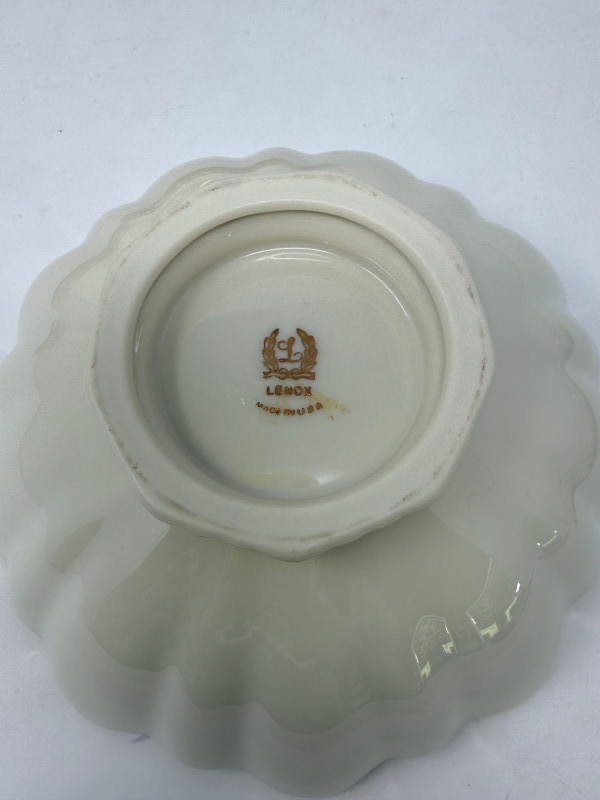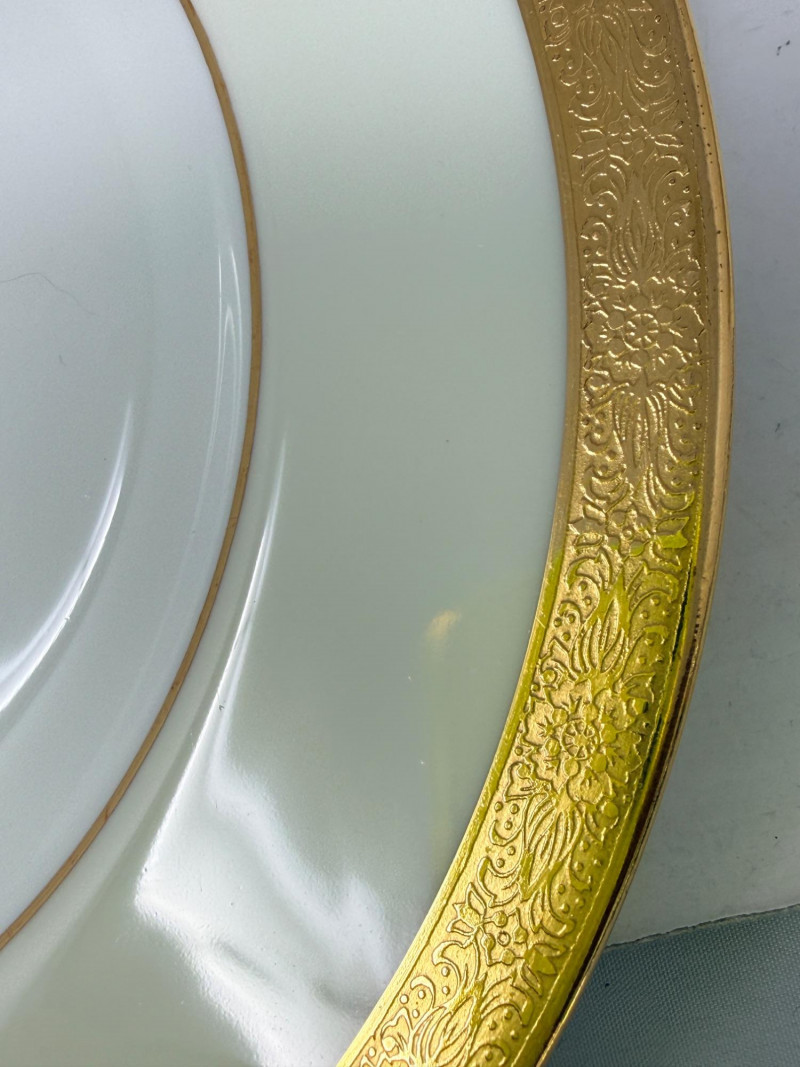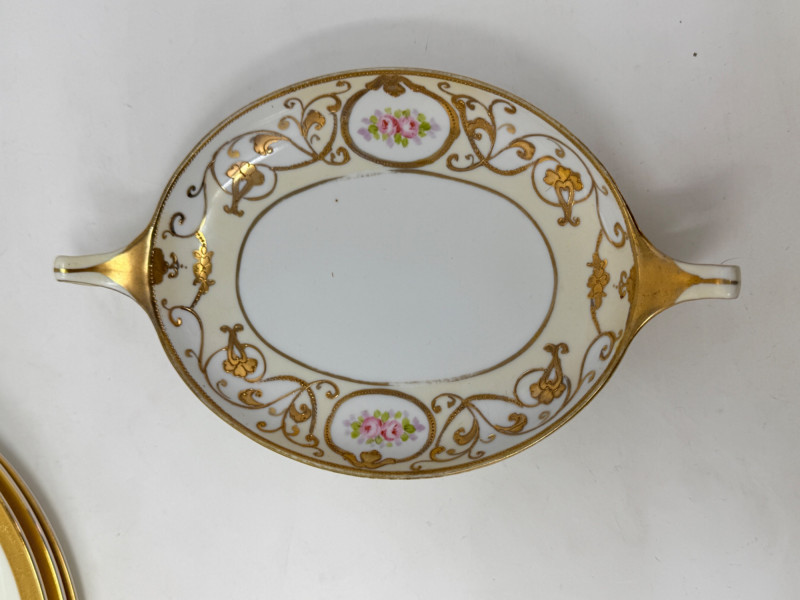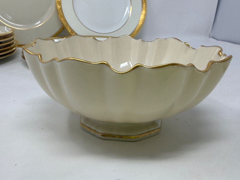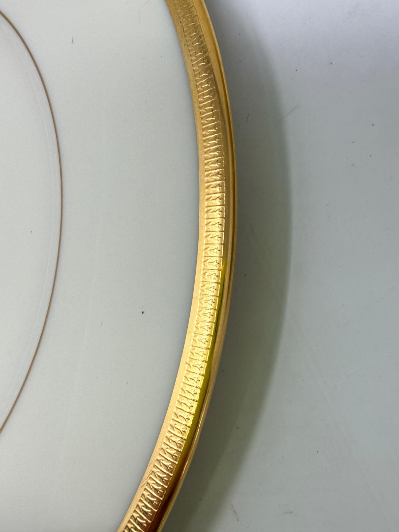 Minton - Lenox - Nippon Gold Rim Plates and Dishes (4) Minton gold rim plates 7.75” (4) Minton gold rim small plates 6.25” (6) Minton gold rim saucers (8) cups Nippon double handle dish 8.5”x5” Lenox scalloped edge bowl 6”x2.25”