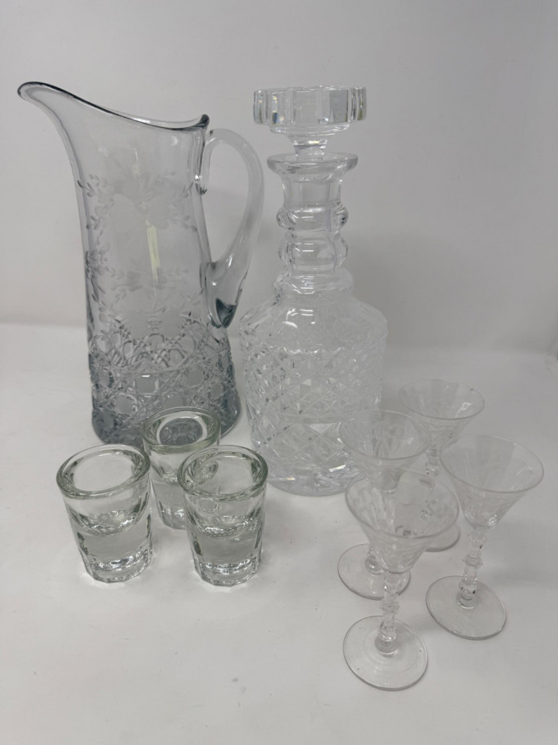 Lot # 207 - Crystal Decanter - Pitcher - Shots - Cordials