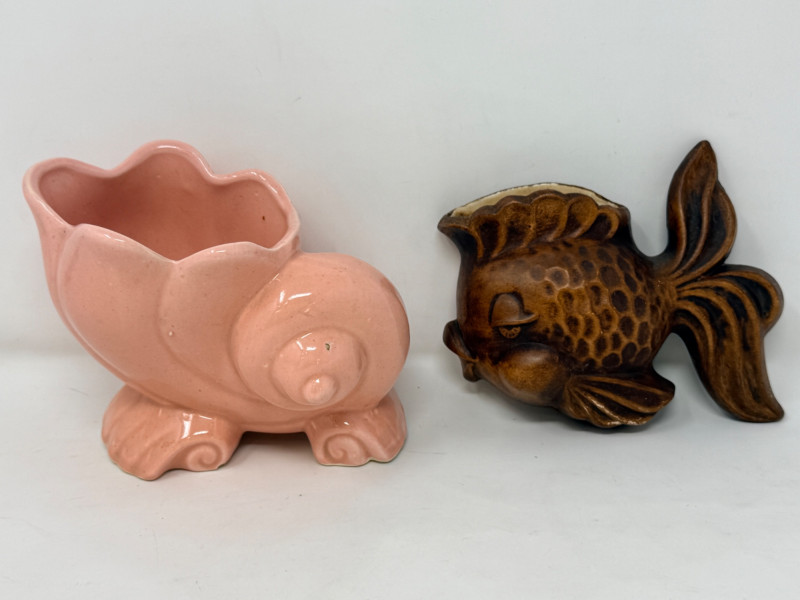 Lot # 209 - Shell and 1957 Fish Wall Planters
