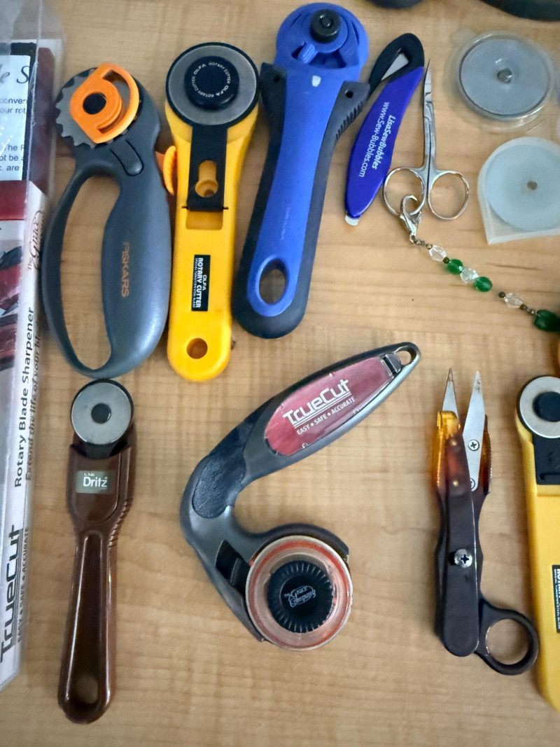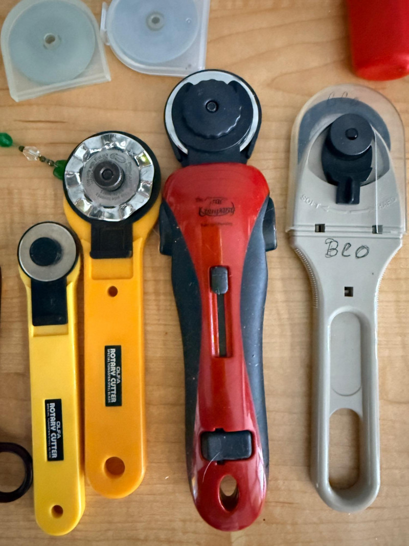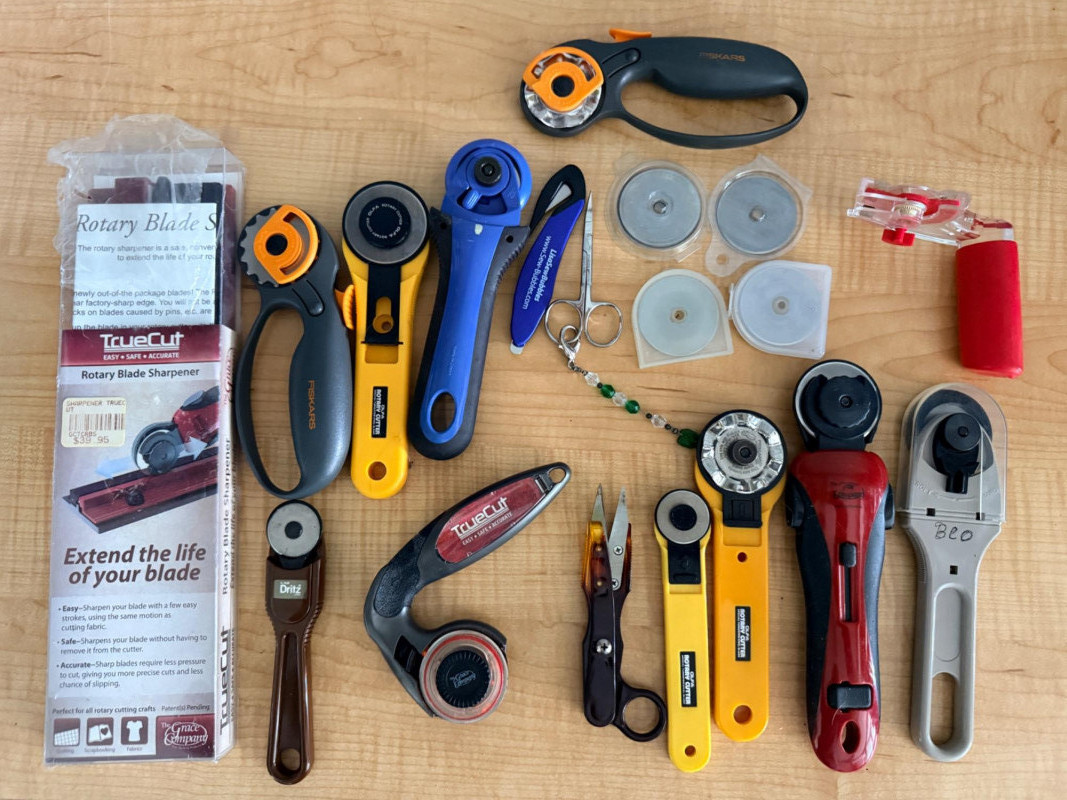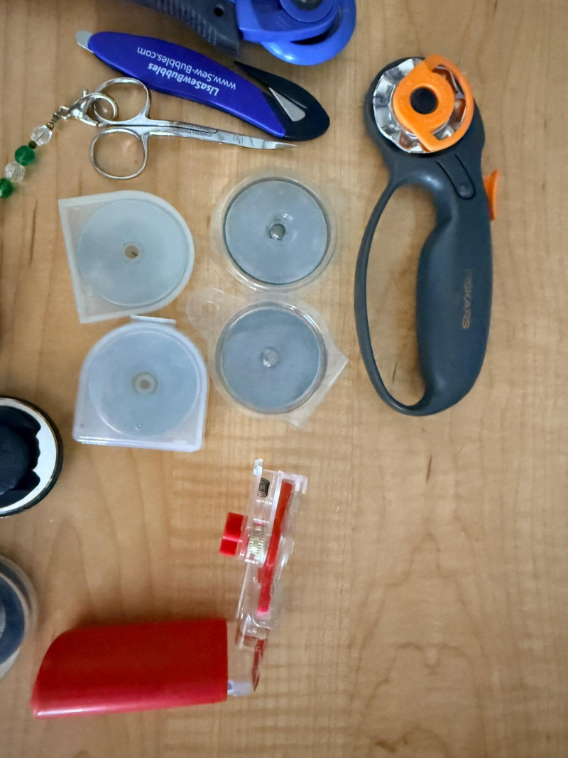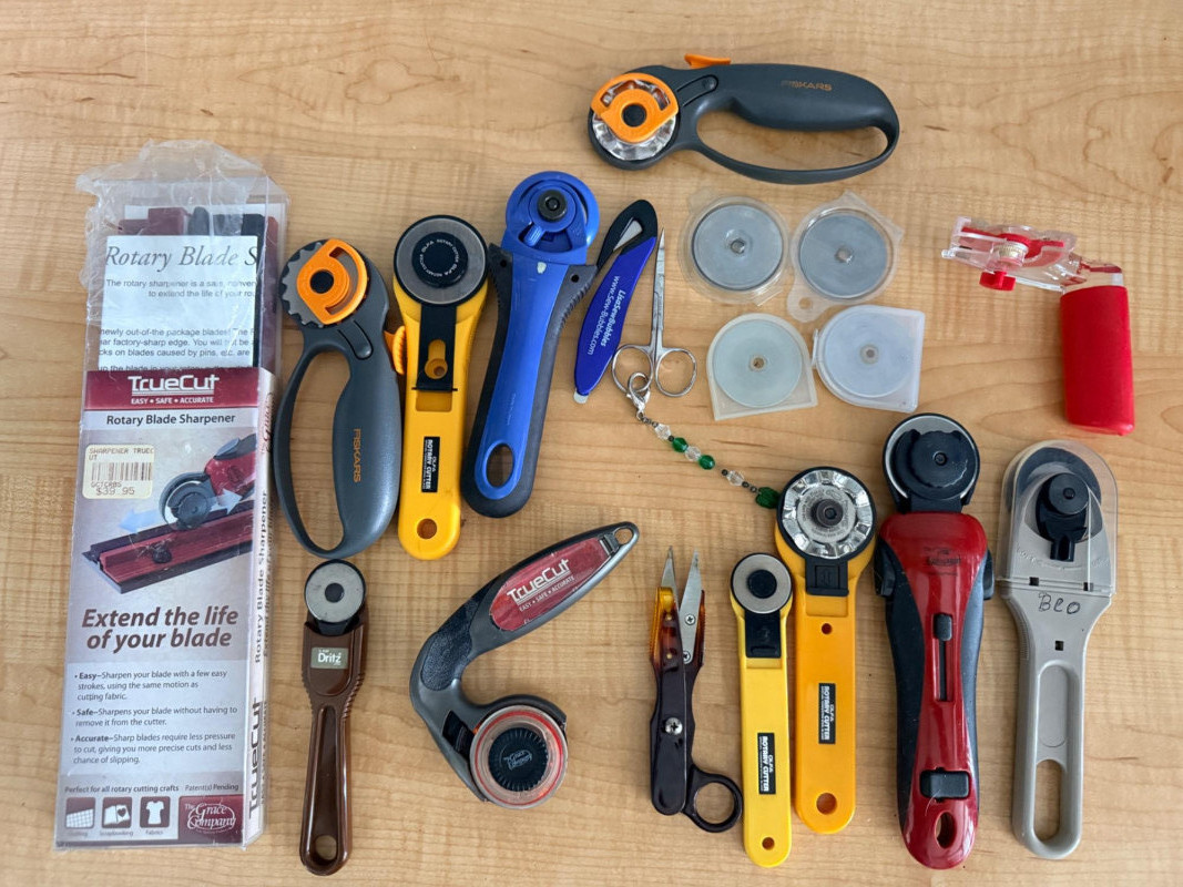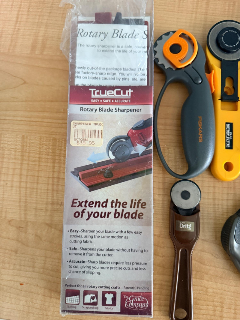 (19) Rotary Cutting Tools, Blades and Sharpener Olfa, True-Cut, Dritz True-Cut Rotary Blade Sharpener Extra Rotary Blades