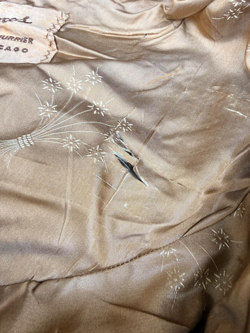George N Foros Furrier, Chicago One Size Satin lining is damaged. See pics.
