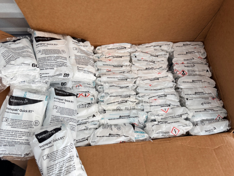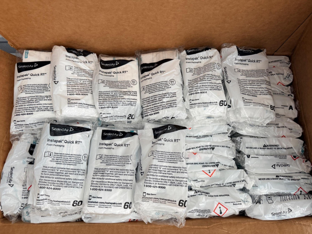 Sealed Air Foam Packing Materials - Tape Gun & Tape Sealed Air InstaPack RT 20/60/80 (Mostly 20’s) Chemical reactive poly foam packing materials. Tape gun & 3 tape rolls Acid free packing tissue UPS adhesive clear front envelopes.