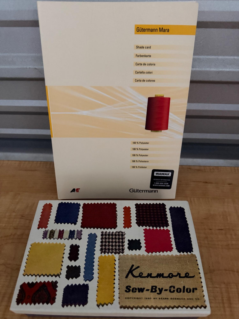 Kenmore Sew By Color Sewing System & Gütermann Mara Shade Card Kenmore Sew By Color gives color coded instruction on which feet, etc to use for your project. Guttermann Mara Shade Card is the shade guide for threads and embroidery floss.