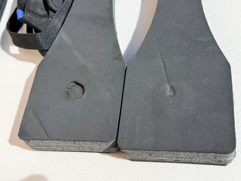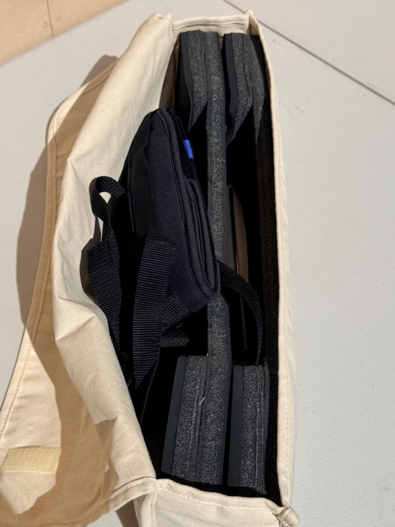A dense foam and web strapping to secure paddle boards or sport boards. In canvas storage bag.