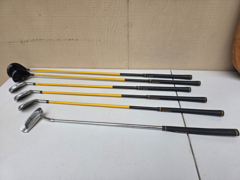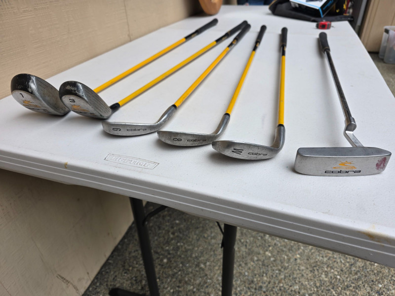 Cobra Speed SZ/Junior Golf Club Set & Matching Stand Bag Graphite Shafts setup for "Soft Flex - High Trajectory" 1,3,8i,9i,W/Putter (6) Junior Clubs, Cobra Stand Bag With Rain Cover, (2) Head Covers and a pair of golf balls finder glasses