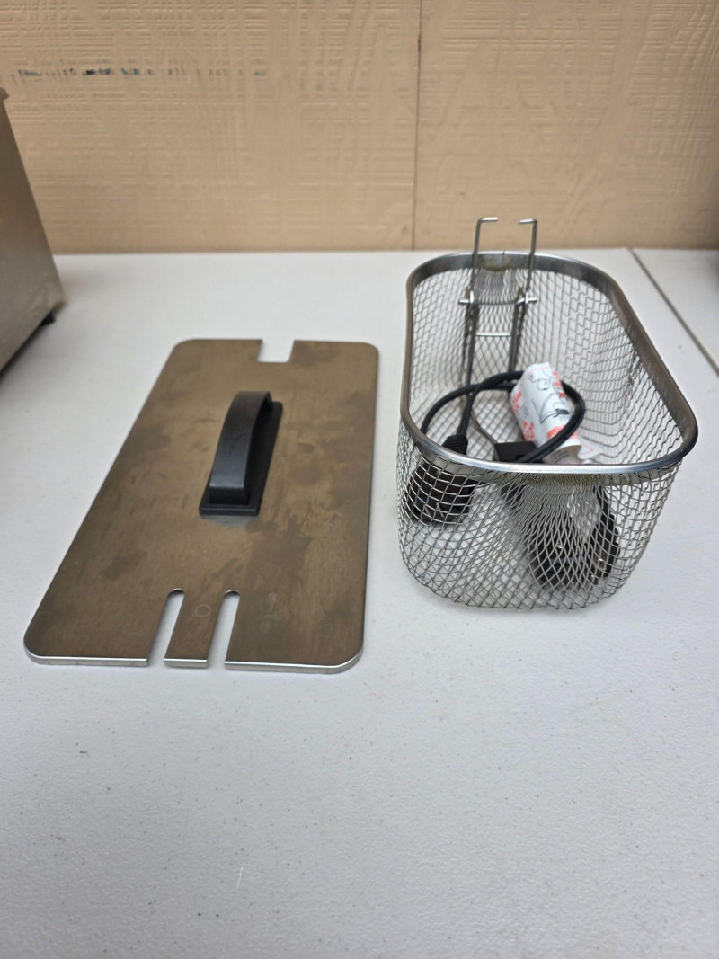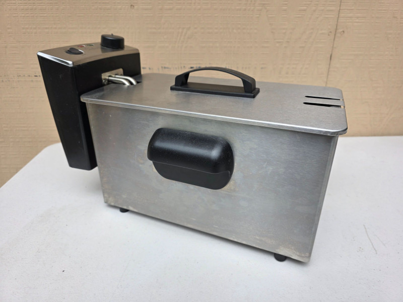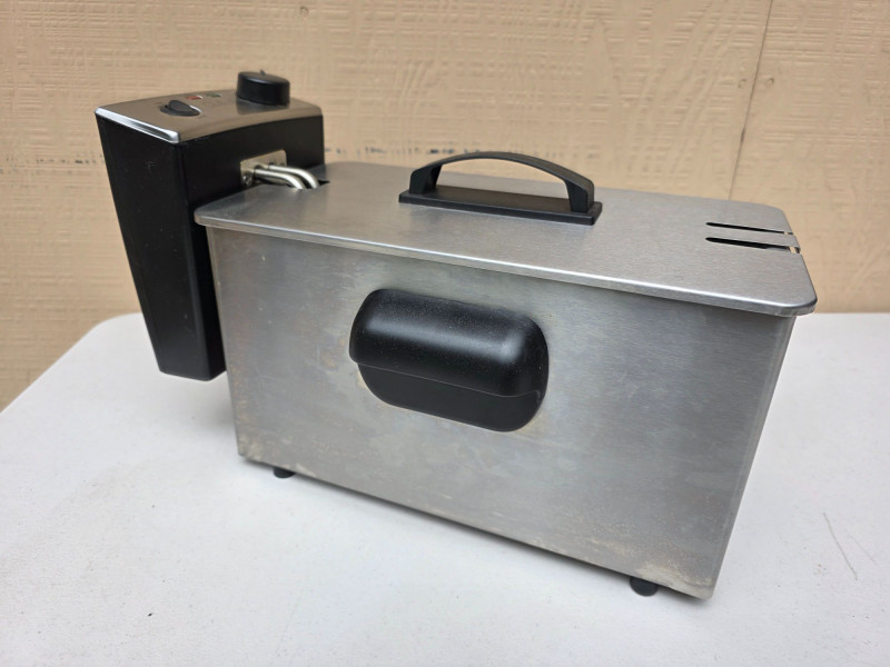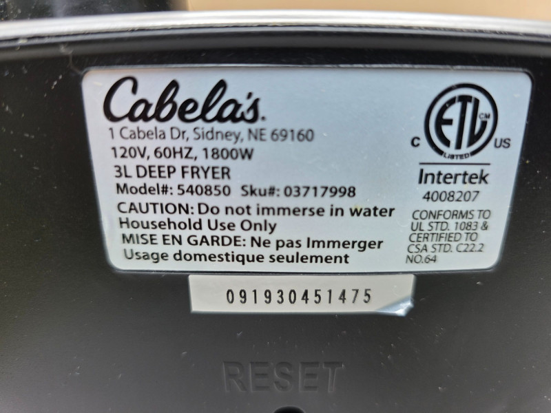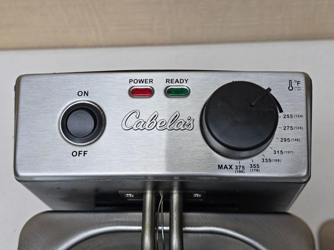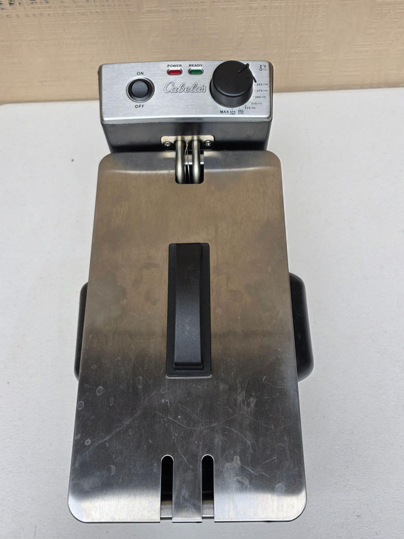 Cabela's 3L Electric Deep Fryer Model #540850 Capacity: Typically holds 3 liters of oil. Material: Constructed from stainless steel for durability. Features: Includes a frying basket with handles and an adjustable thermostat control panel. Power: Usually rated for high wattage to quickly heat oil Very clean and ready to cook wings in tonight! 9.5"T x 15.5"L x 7.5"D
