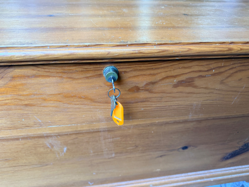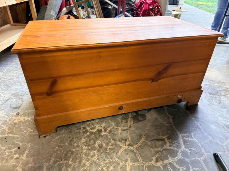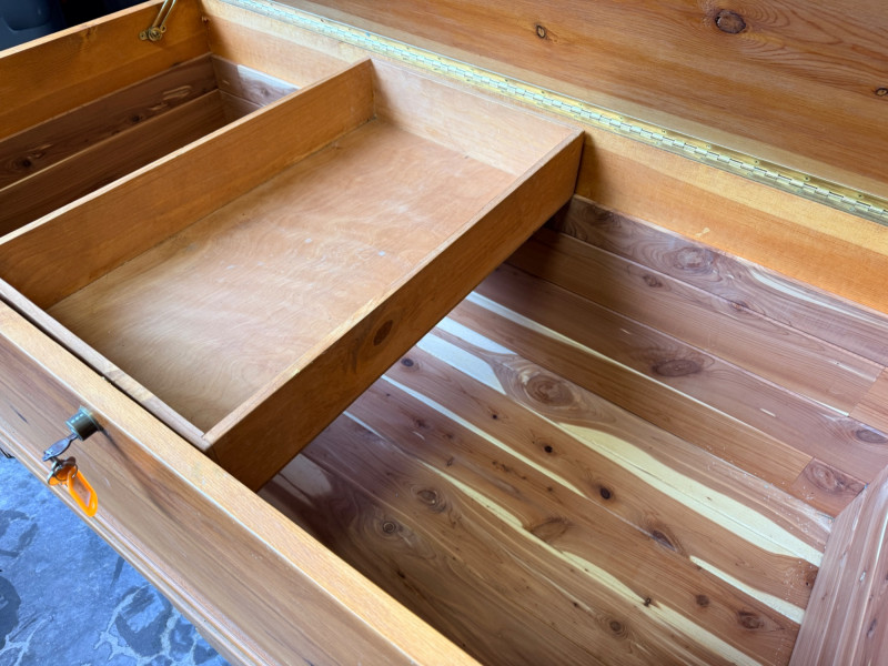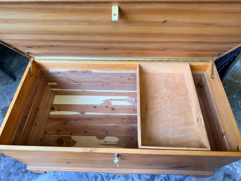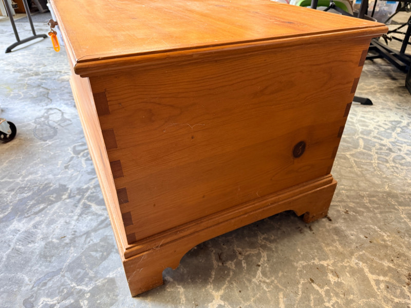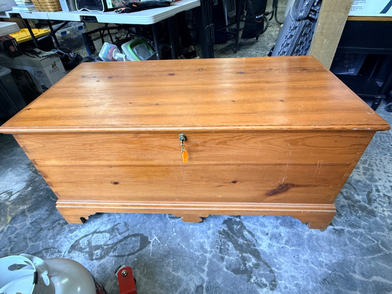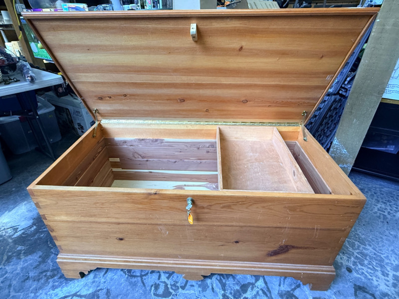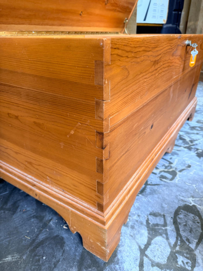 Cedar Lined Pine Storage Chest Pine chest with cedar lining. One sliding storage box inside. Locking with keys.