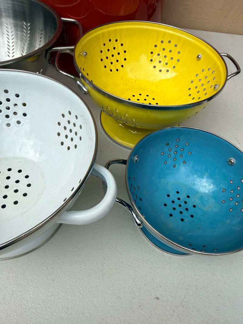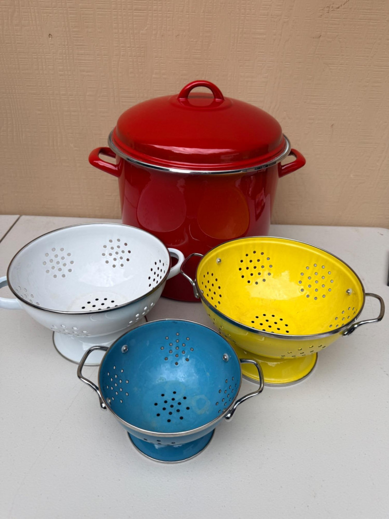Lot # 36 - Colorful Enameled Stockpot & Colanders Set