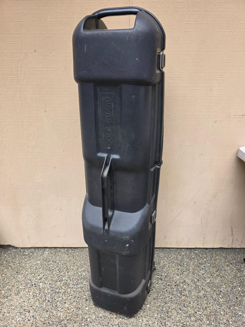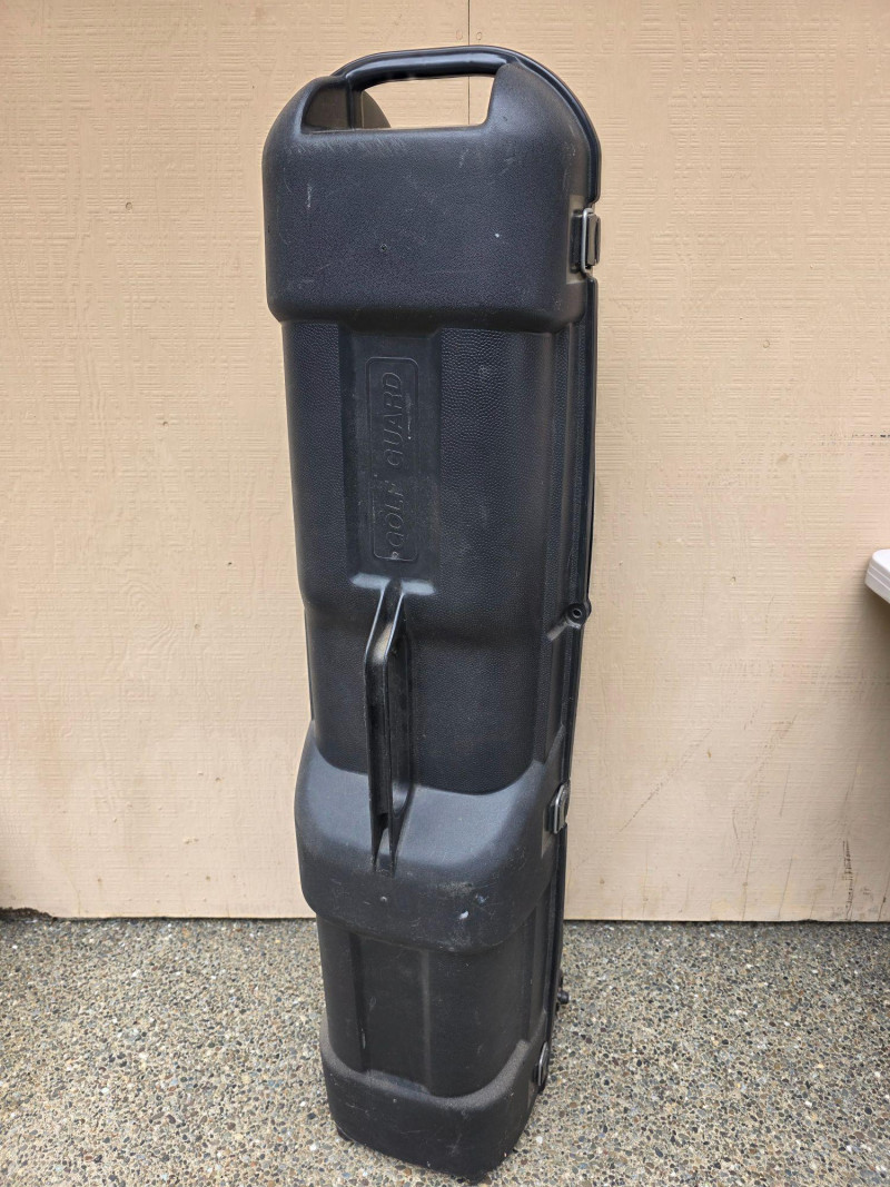 Golf Guard Hard Shell Rolling Golf Club Travel Case Construction: Heavy-duty hard-shell plastic construction. Mobility: Features wheels for easy rolling through airports. Security: Typically includes 3 latches and is lockable 51"T x 14"W x 13"D