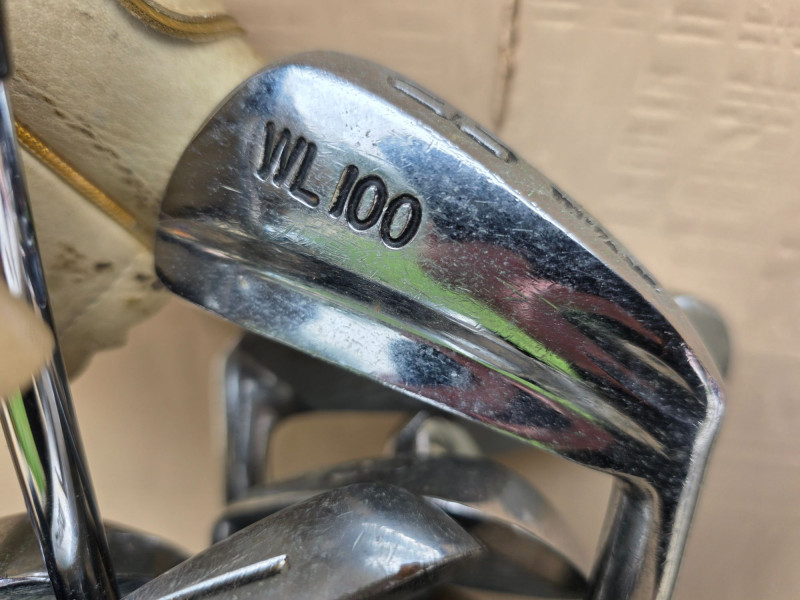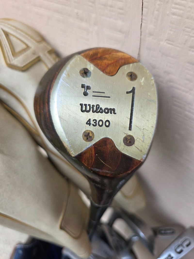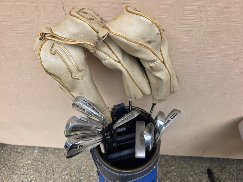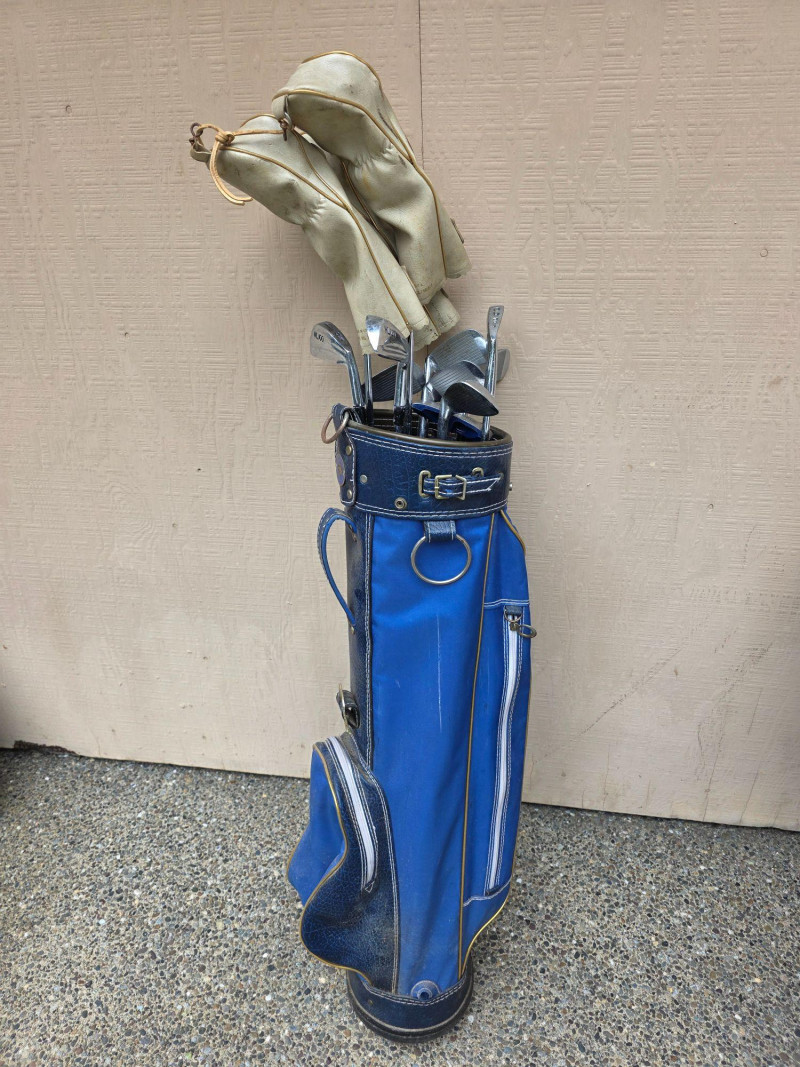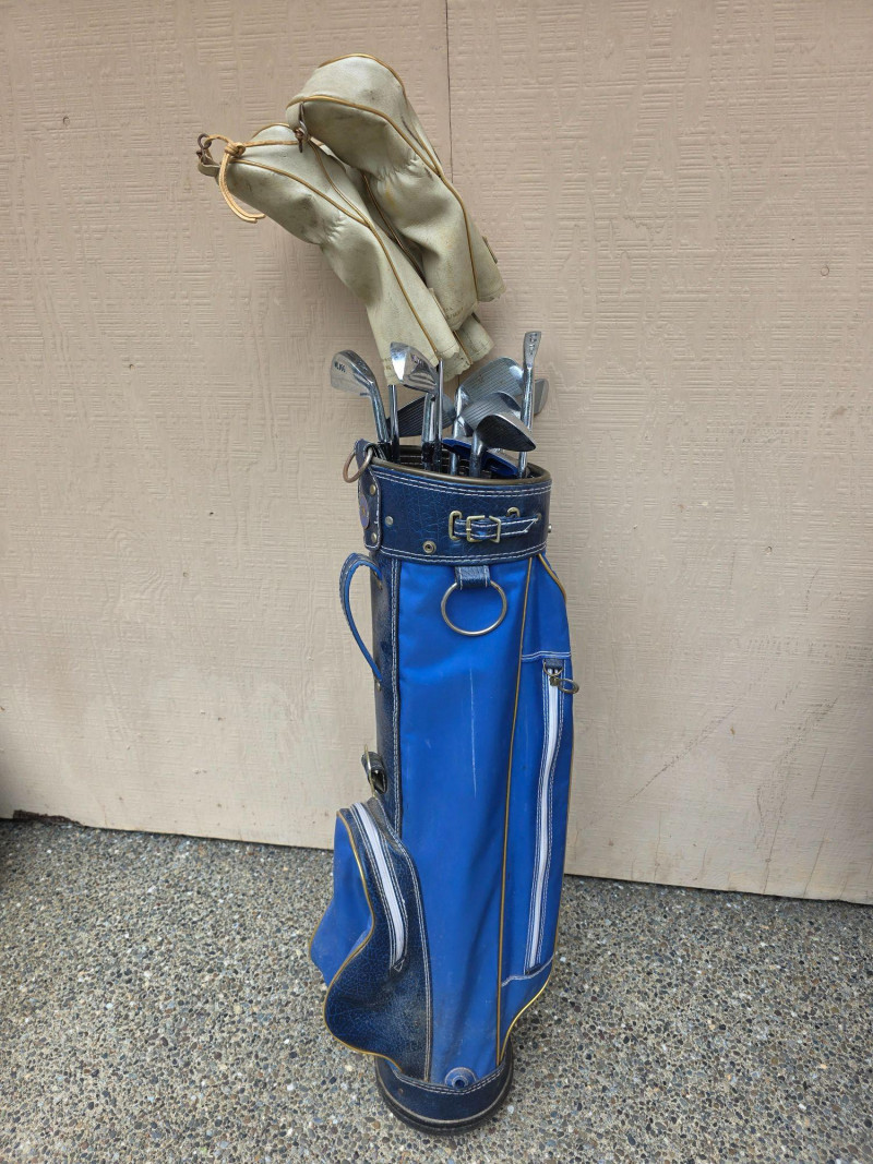 Vintage Wilson Golf Clubs With Bag Wilson 4300 Driver/3W/5W Wilson WL100 Irons 3/4/5/6/7/8/9/PW/Putter Cougar Golf of California blue golf cart bag Includes head covers, rain cover & bag strap