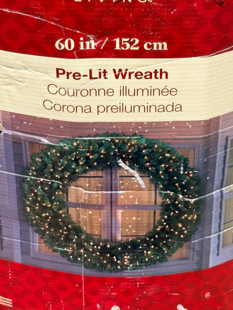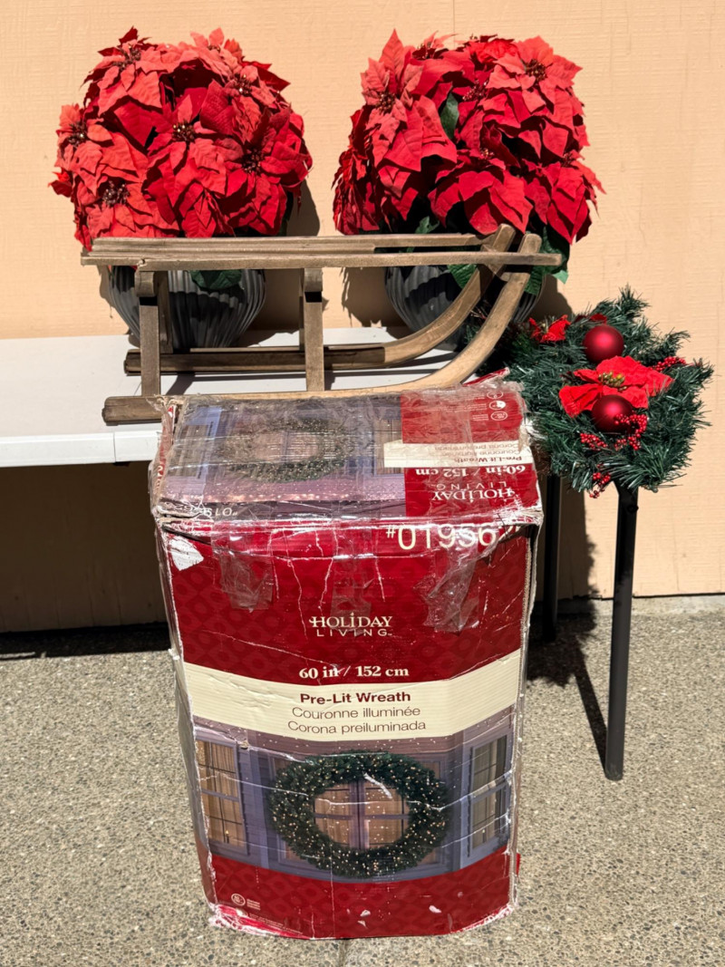 Lot # 60 - Outdoor Christmas - 60” Lighted Wreath - Small Sled - Poinsettias