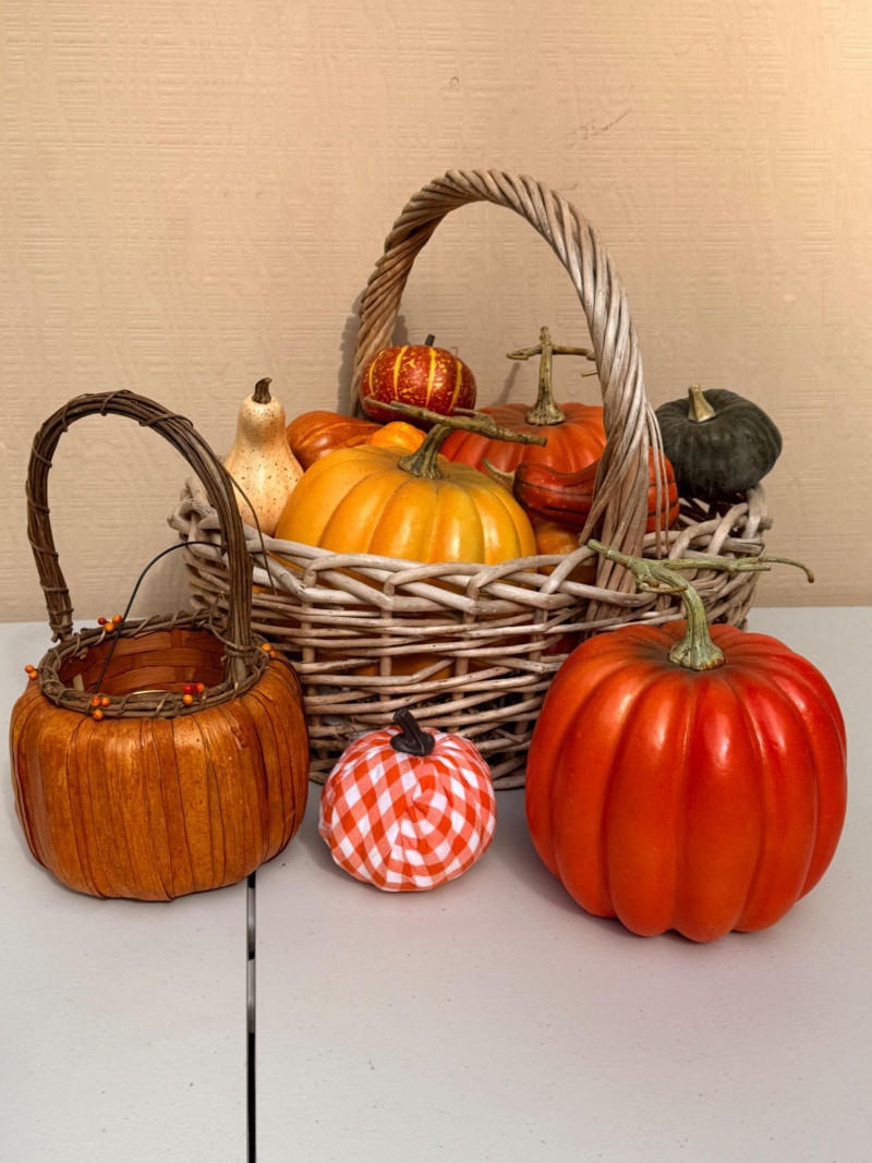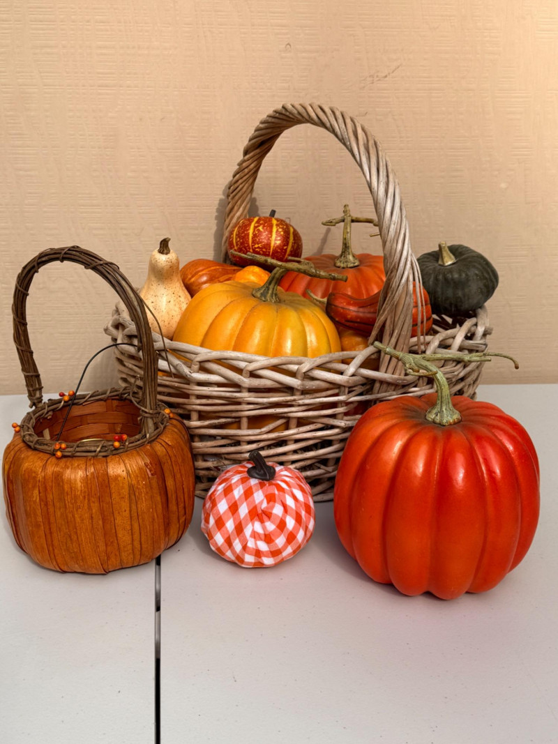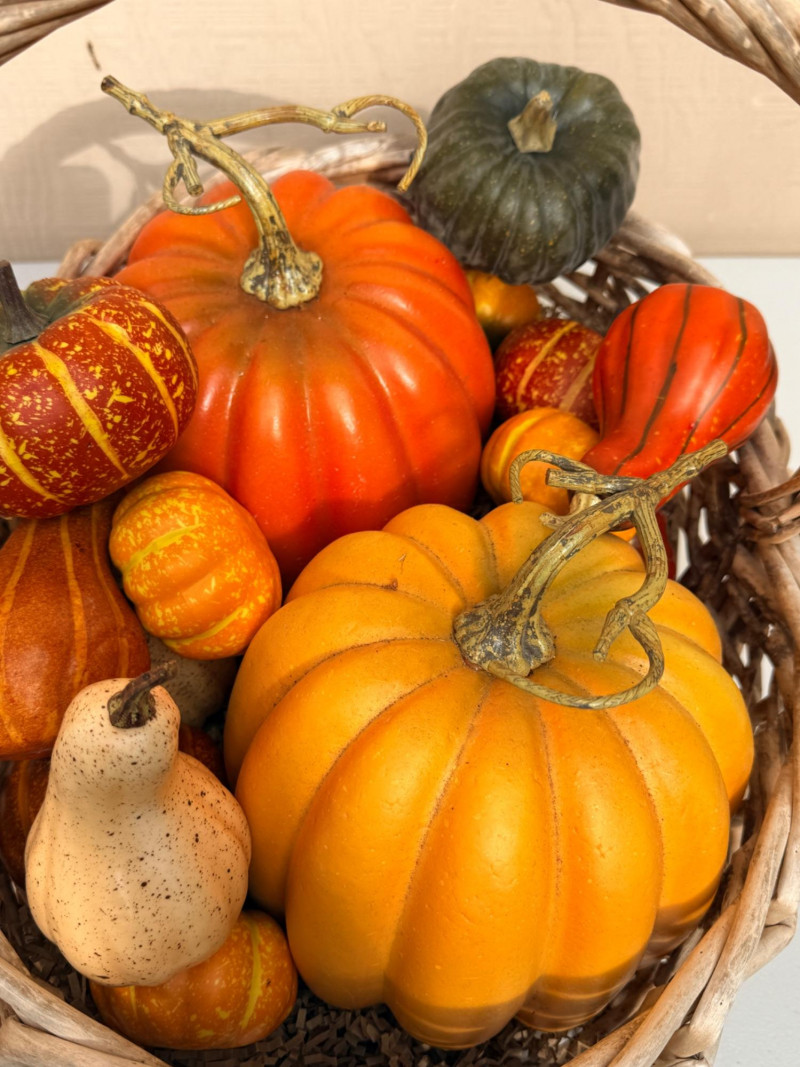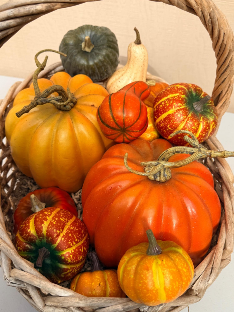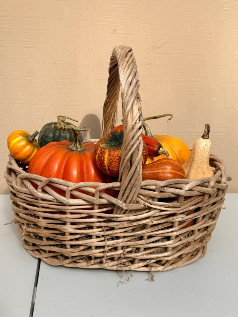 Oh My Gourd! A Large Basket of Pumpkins & Gourds Basket measures 18”x15”x16” Nice fall decor