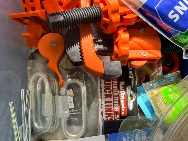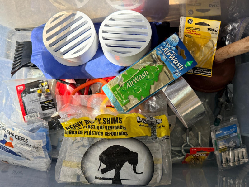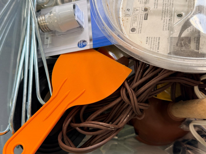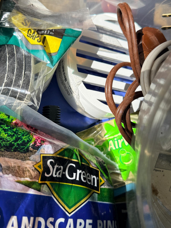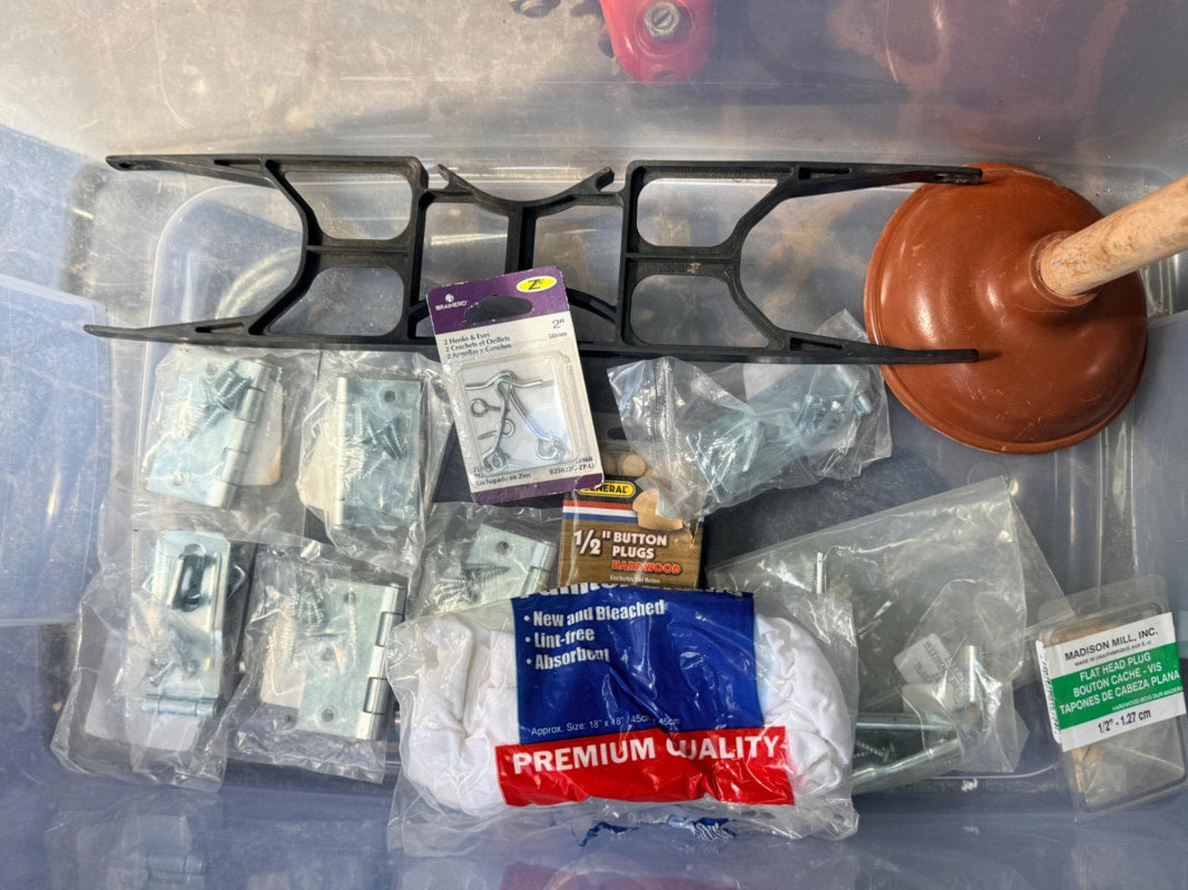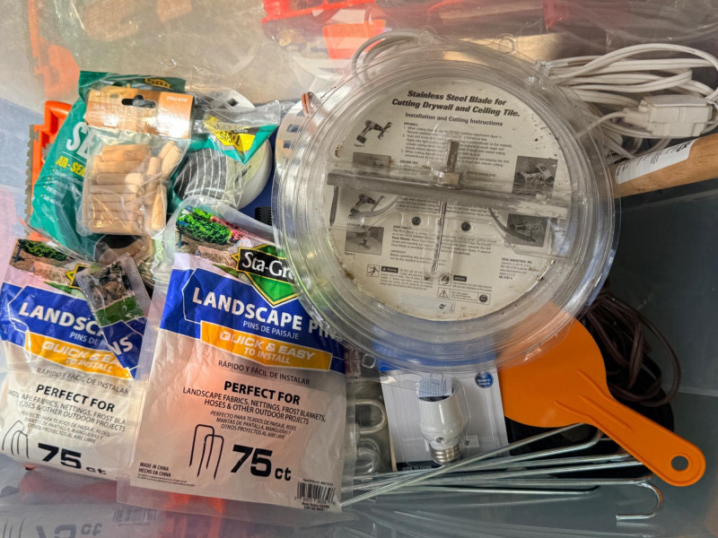 Miscellaneous Hardware Inside and Out A lot of miscellaneous items from landscape pins to (unused) plunger.