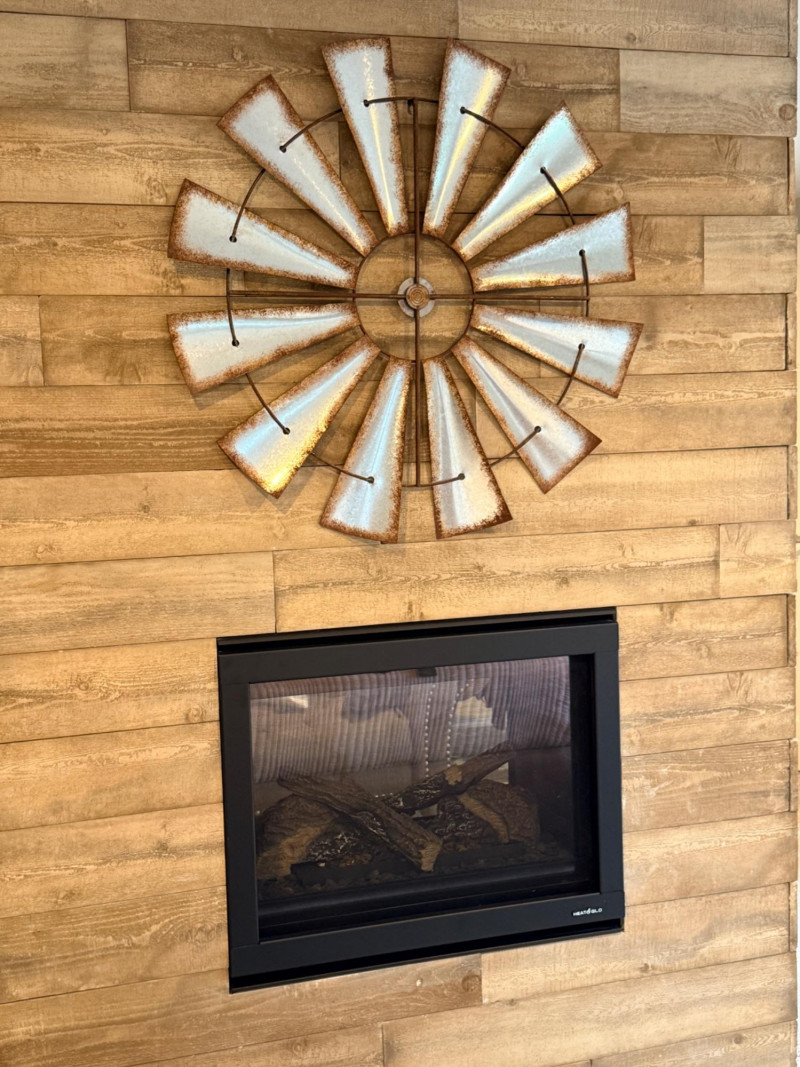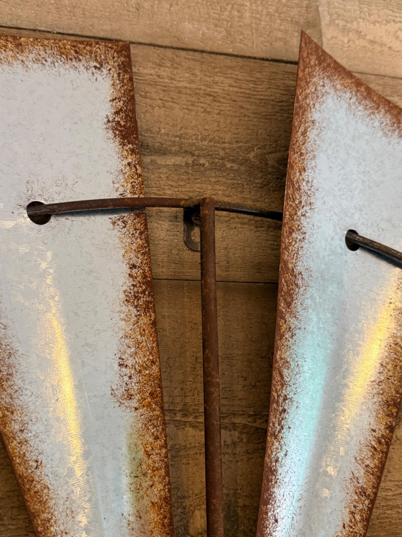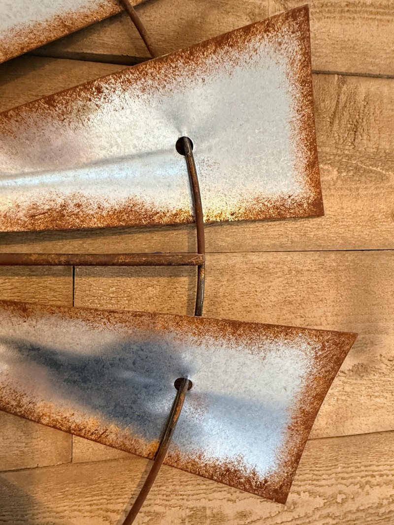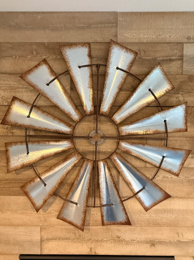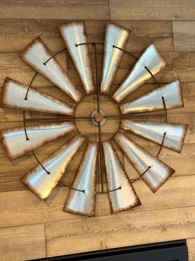 Windmill Inspired Wall Decor. Aluminum paddles with simulated rusty edges. 35”diameter