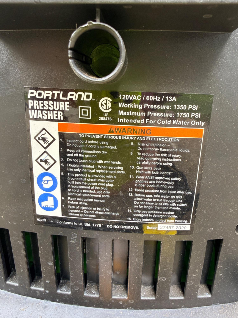 Lot # 116 - Portland 1750psi Electric Pressure Washer