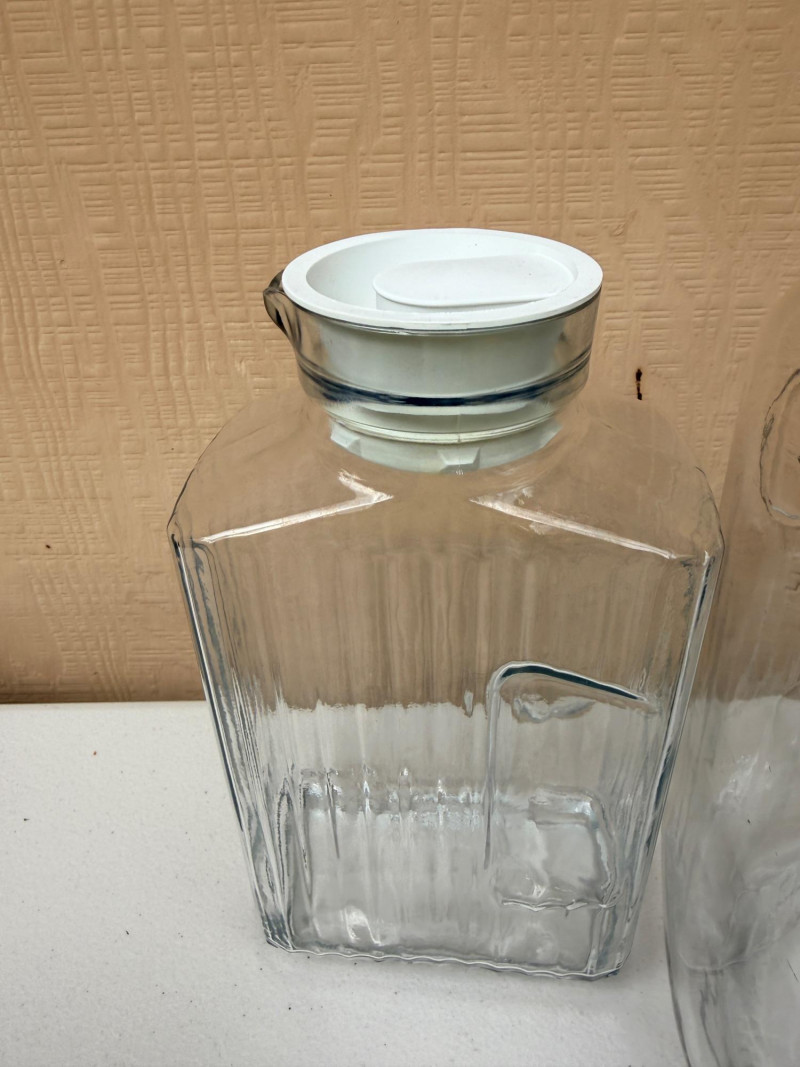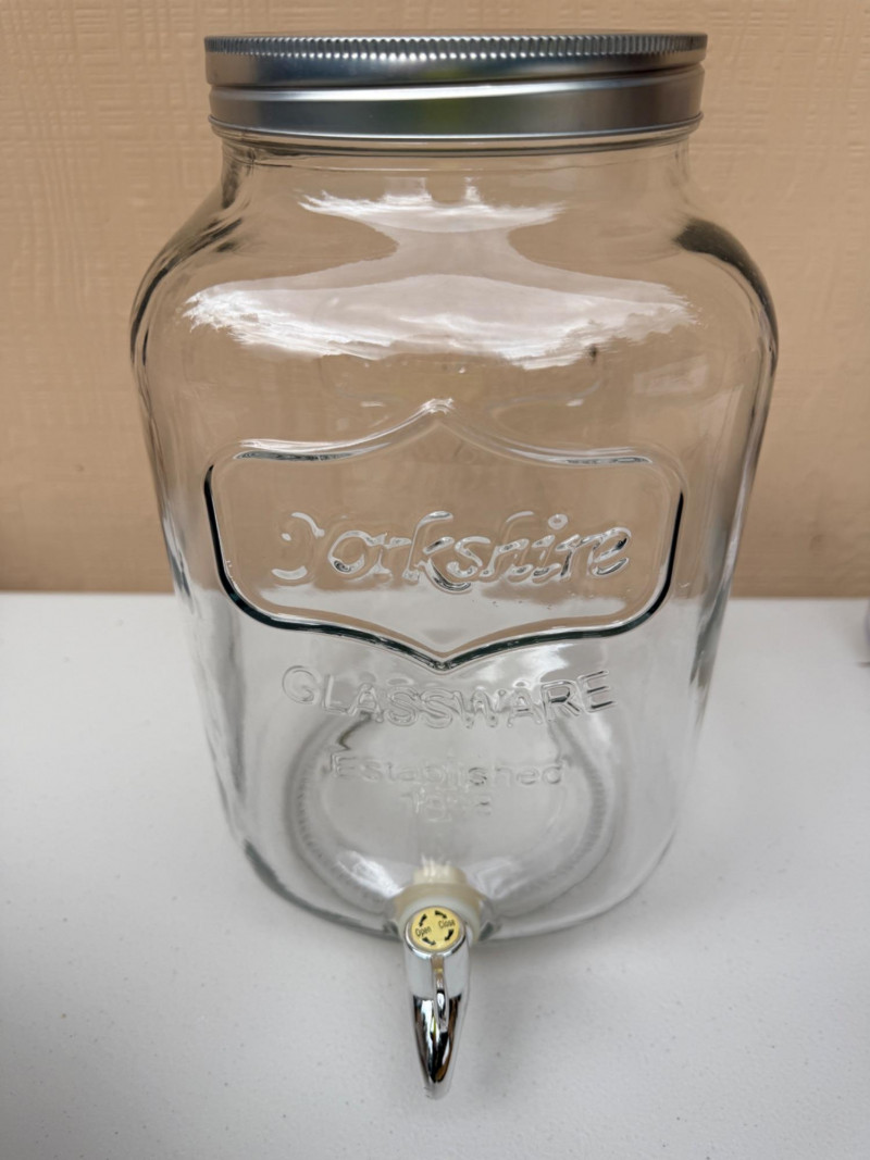 Glass beverage dispenser is 7.5”x7.5”x13”