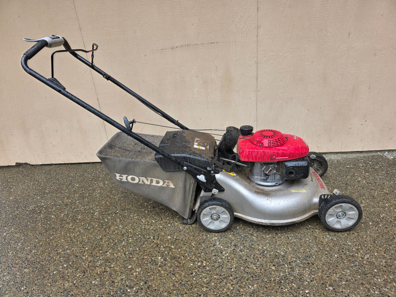 Honda 21" Walk-Behind Self-Propelled Lawn Mower Model #HRR2168VKA Features a 160cc Honda GCV gasoline engine Self-propelled with a "Smart Drive" variable speed control mechanism on the handle Equipped with a 21-inch cutting deck MicroCut® Twin Blade System for finer clippings Designed with a 3-in-1 "Clip Director" to switch between mulching, bagging, and discharging Bagger & side discharge attachments included Could use a cleaning but work very well Includes a new set of blades Tested - Works!