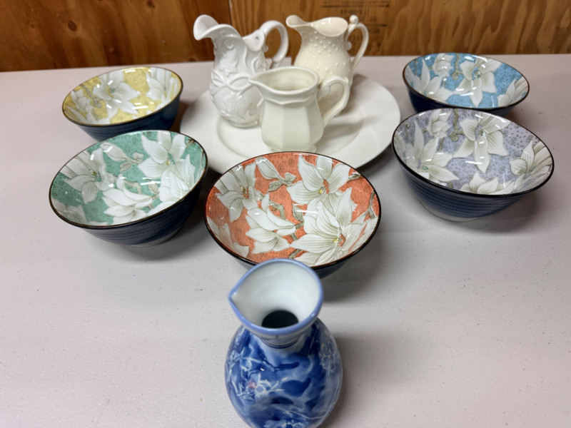 Lot # 168 - Japanese Bowl Set - Pier One Plate - Mini Pitchers